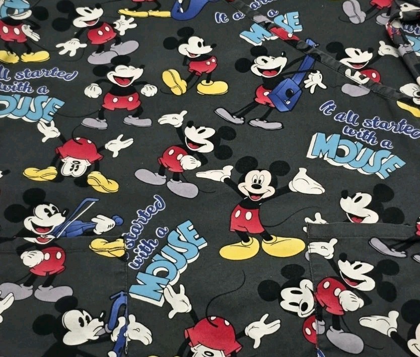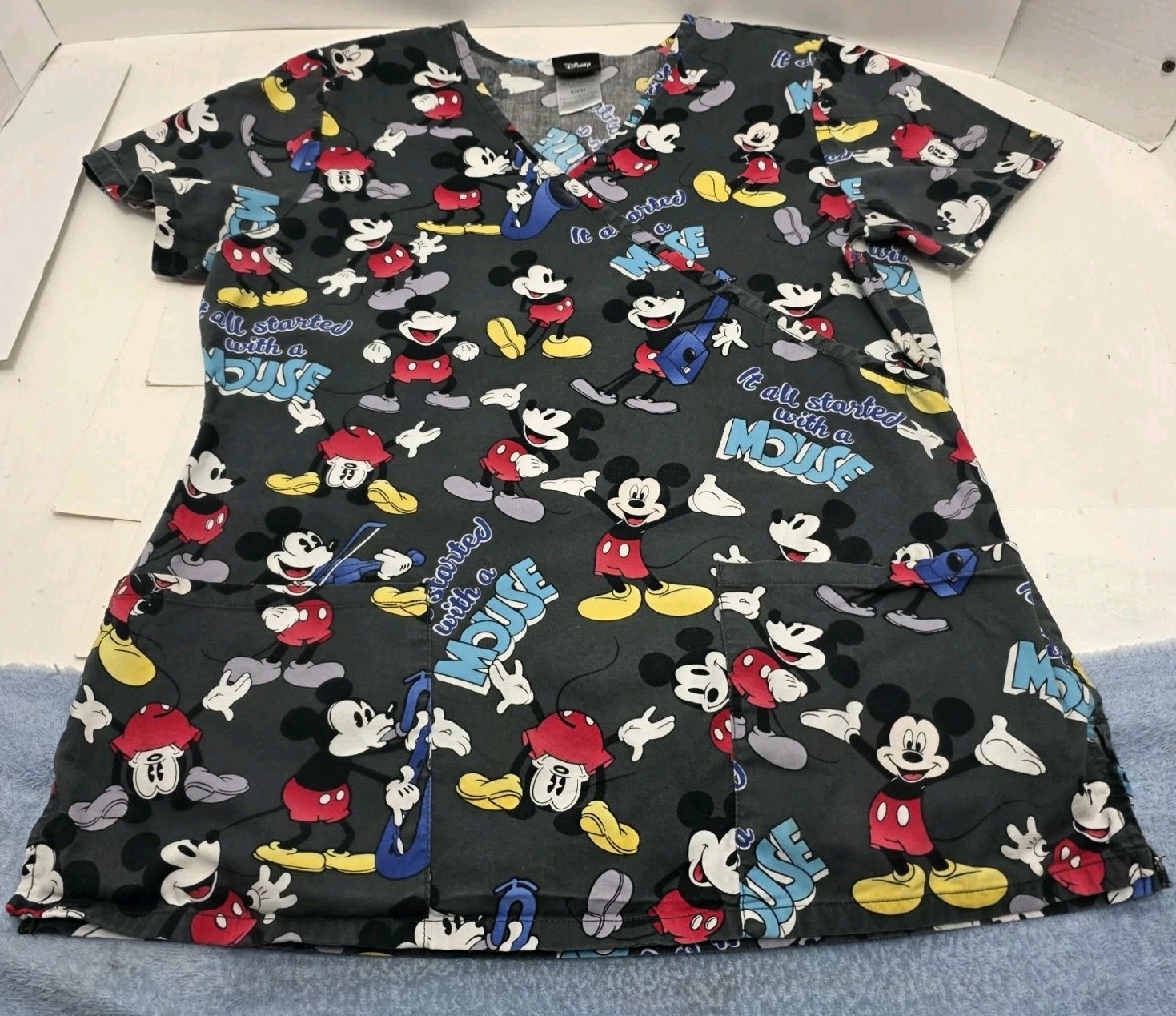 2 Disney Scrub Shirt Tops Mickey Mouse Stitch - Size Small