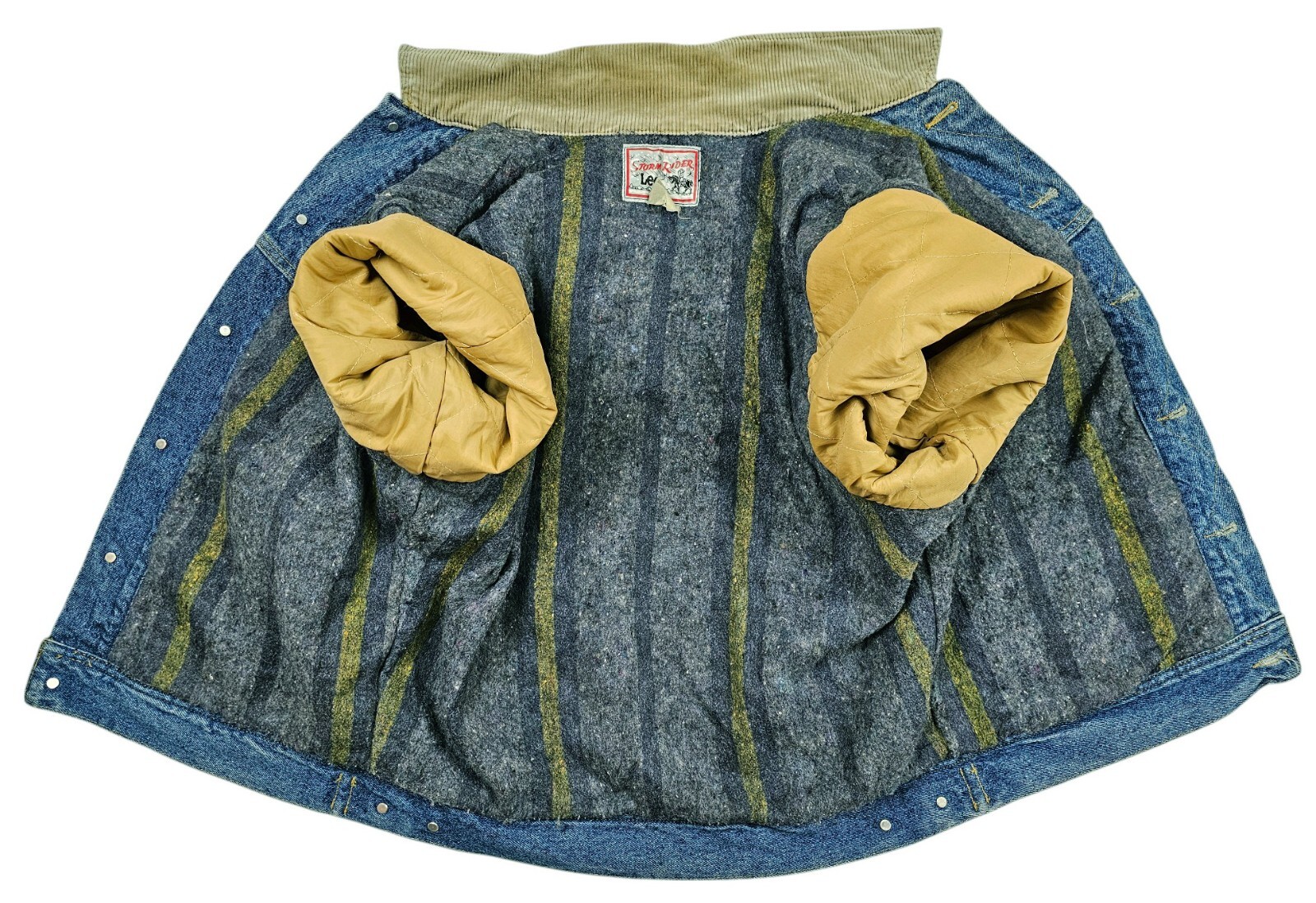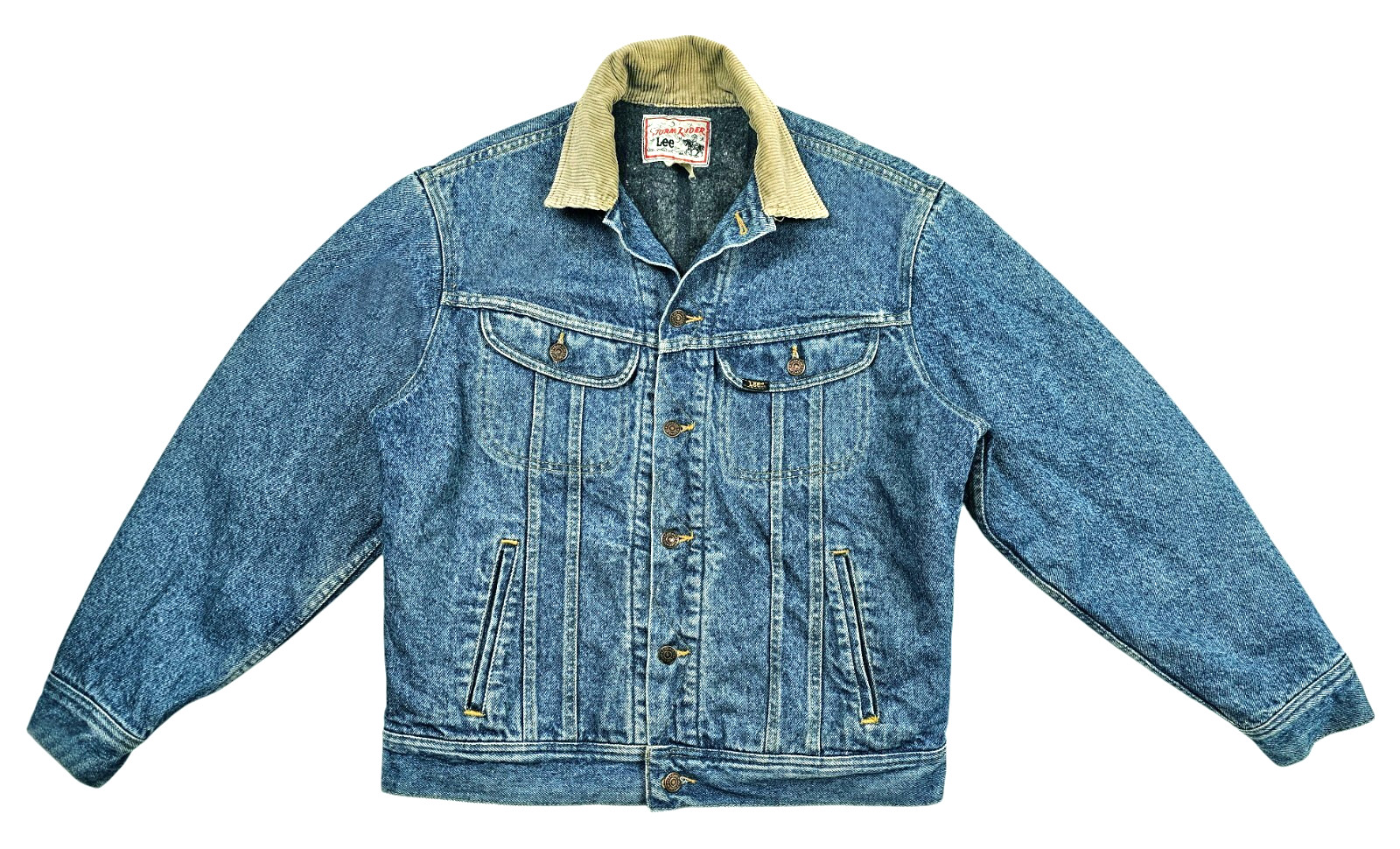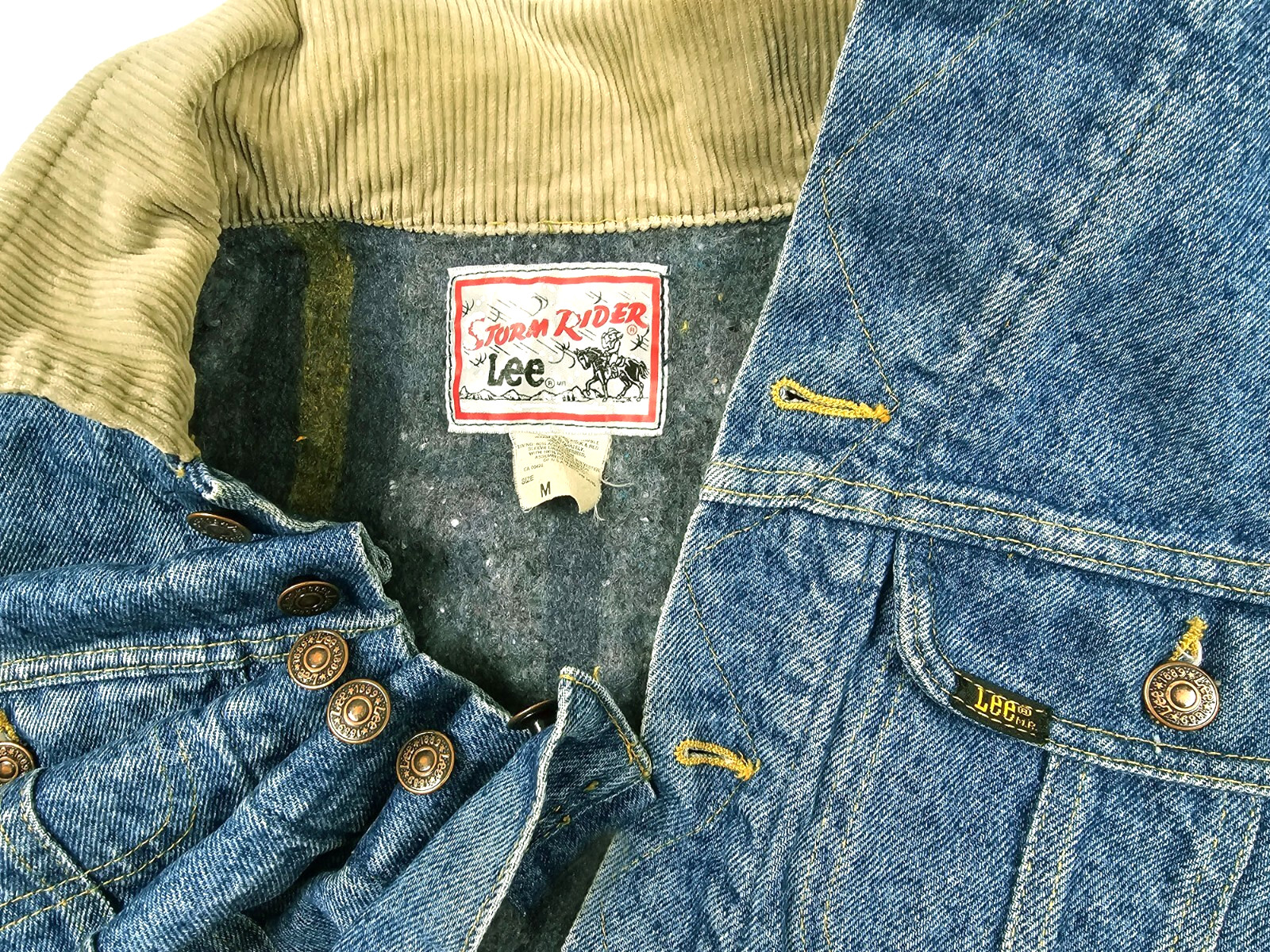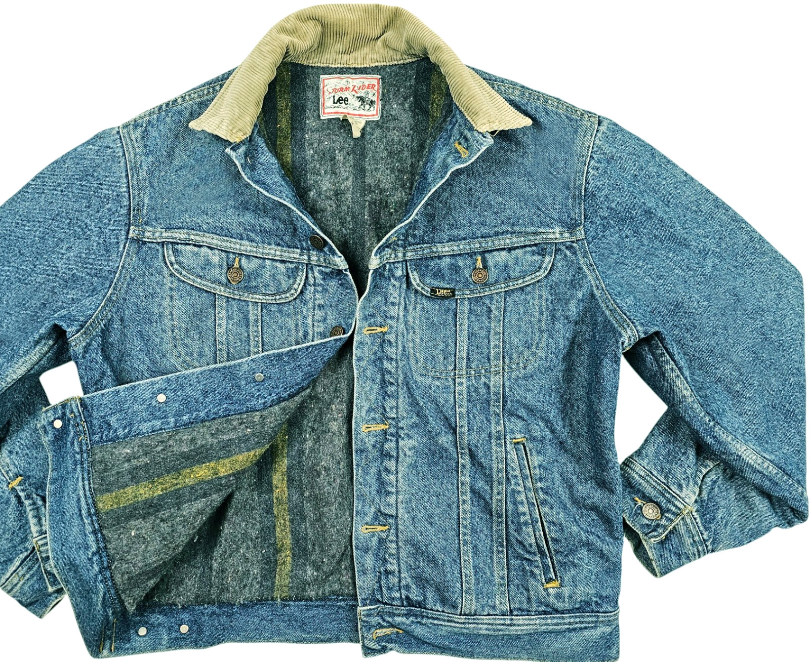 HOT VTG Men's LEE STORM RIDER TRUCKER BLANKET LINED 4 Pcks Denim JACKET Jeans M