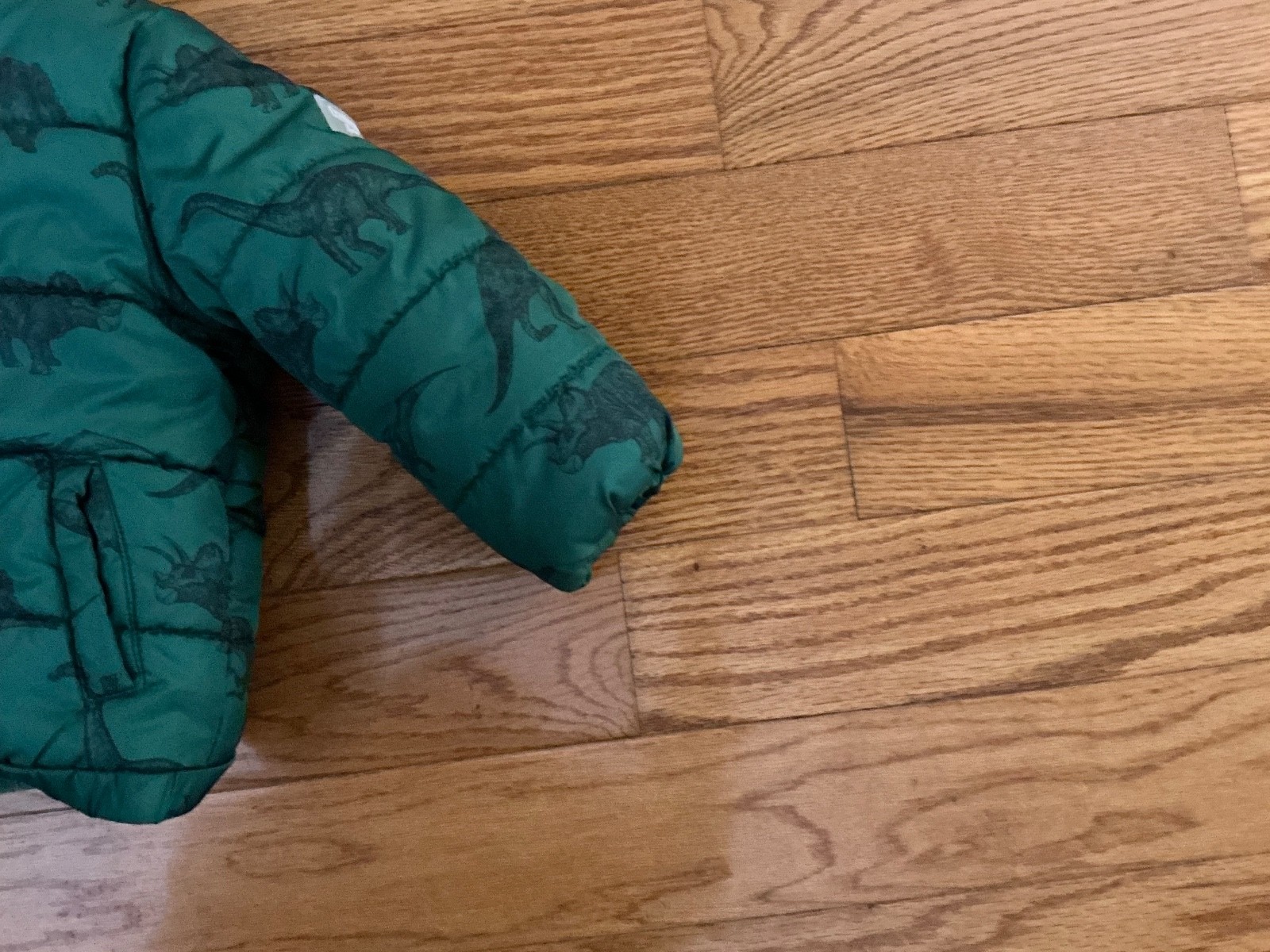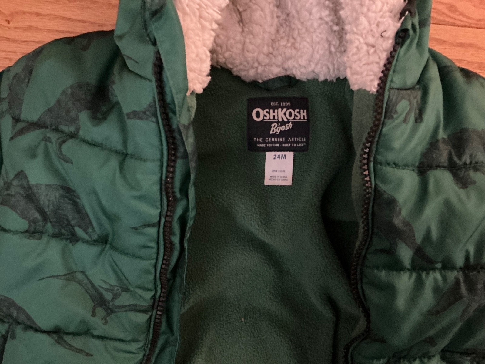 как выглядит OshKosh Boys 24M Green Fleece Sherpa Lined Puffer w/Dinosaur Pattern Jacket фото