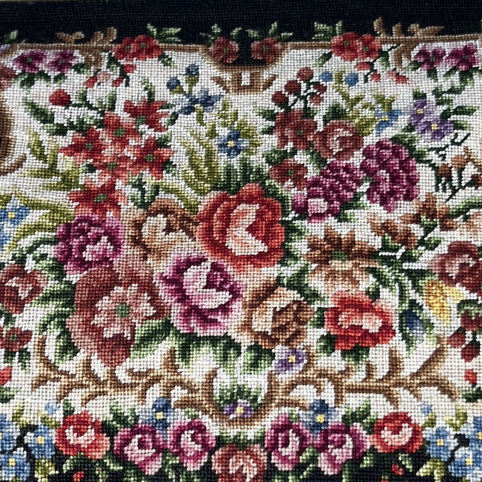 Vtg Traditional Chinese Petit Point Hand Embroidered Floral Evening Bag Purse