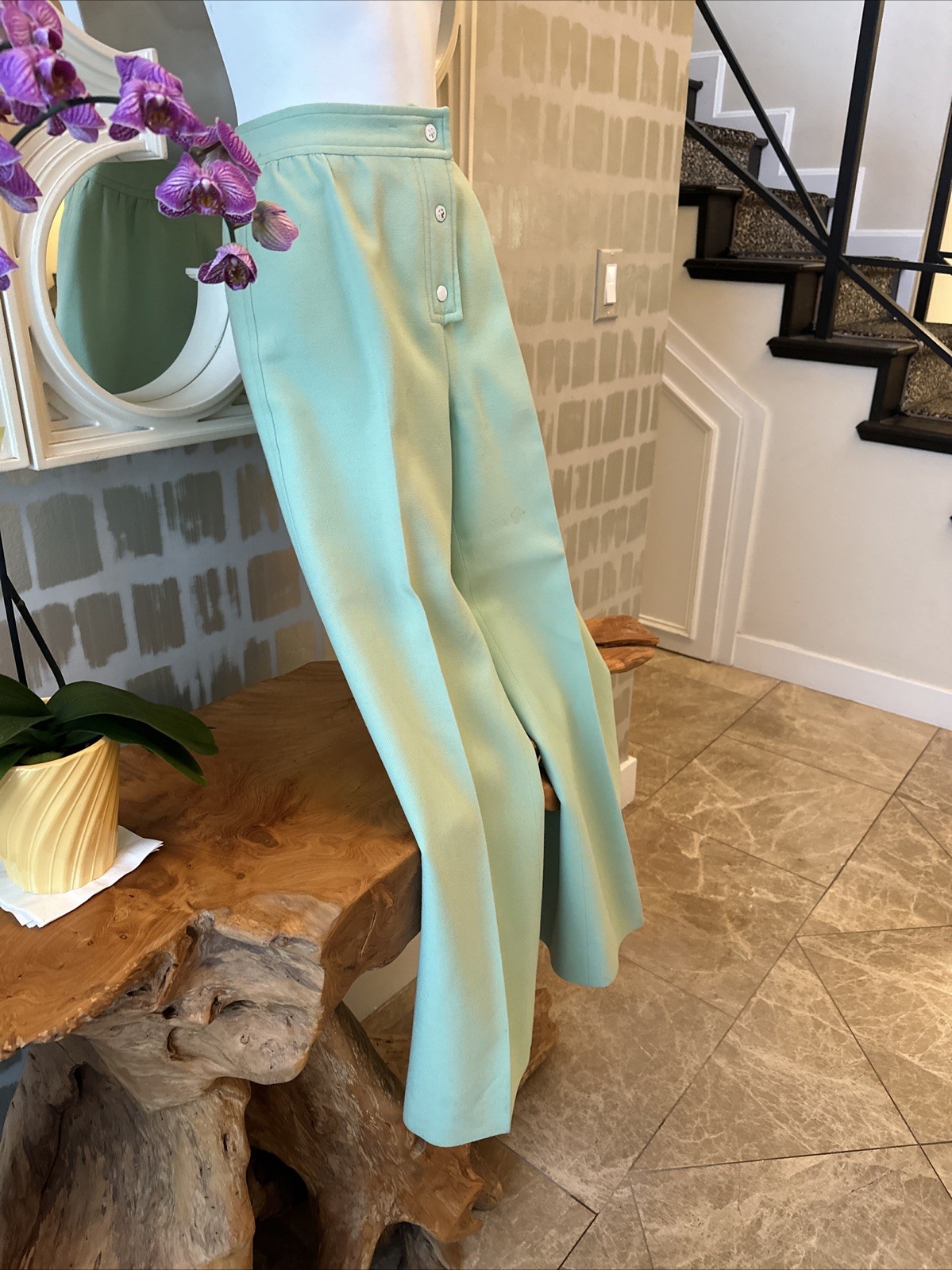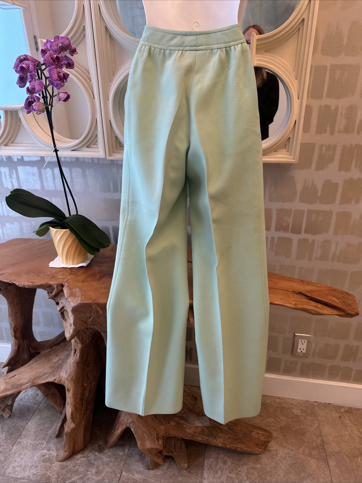 Courreges Hyperbole From I Magnin 70s High Waist Wide Leg Green Wool Trousers XS