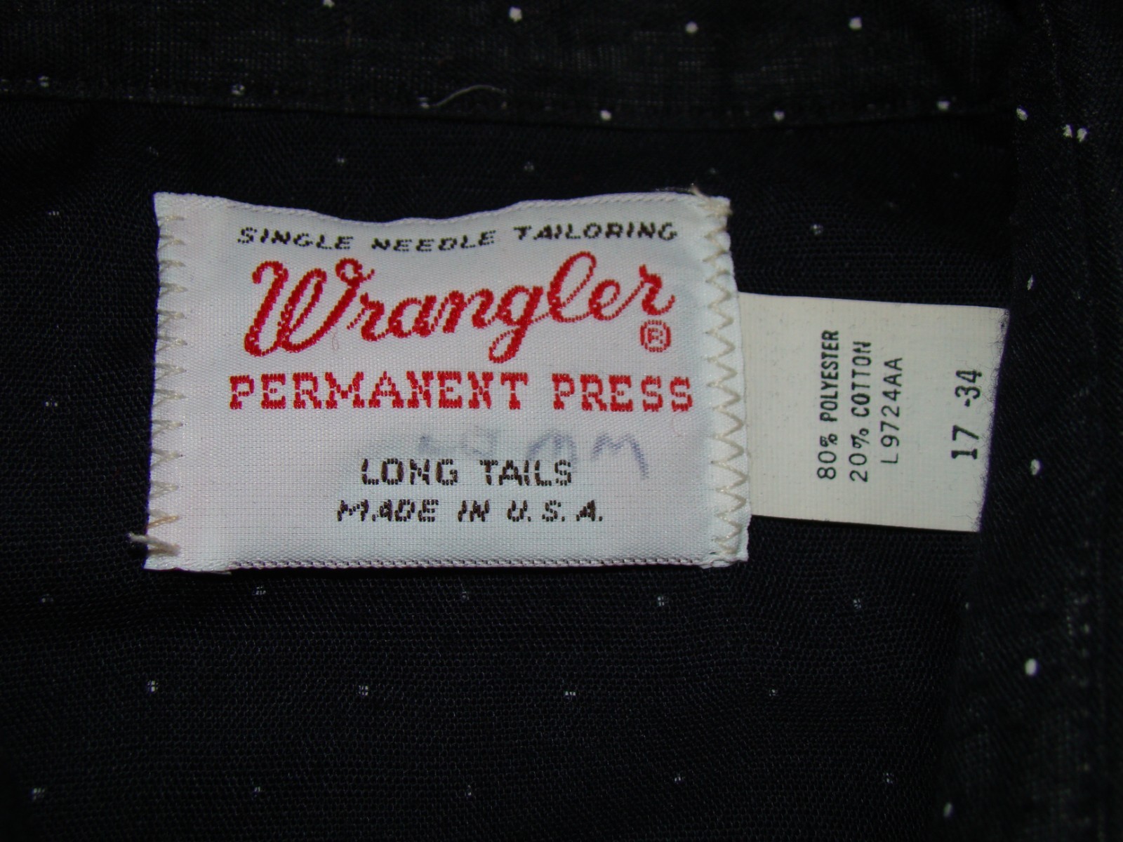 Vtg 70s Wrangler Mens L Permanent Press Long Tails Pearl Snap Black Shirt USA