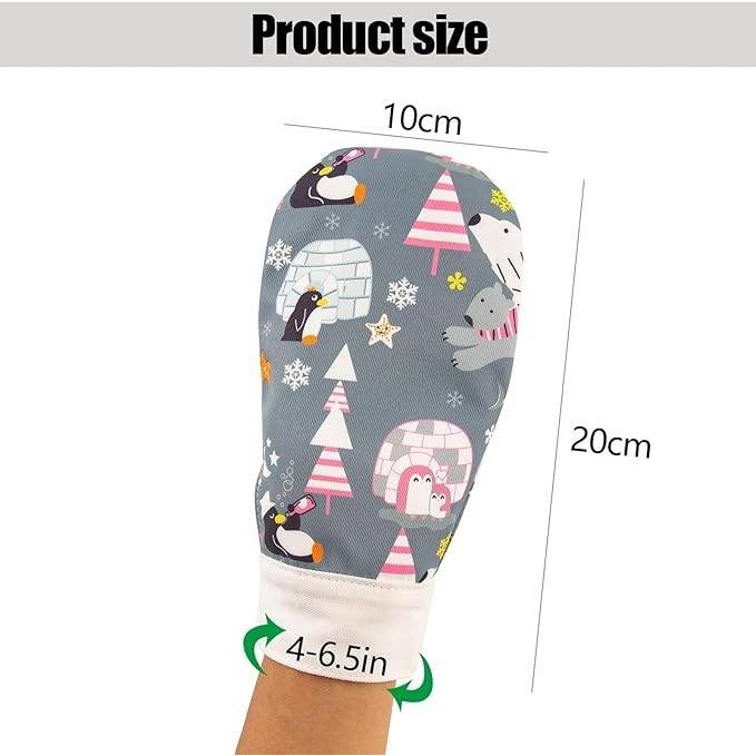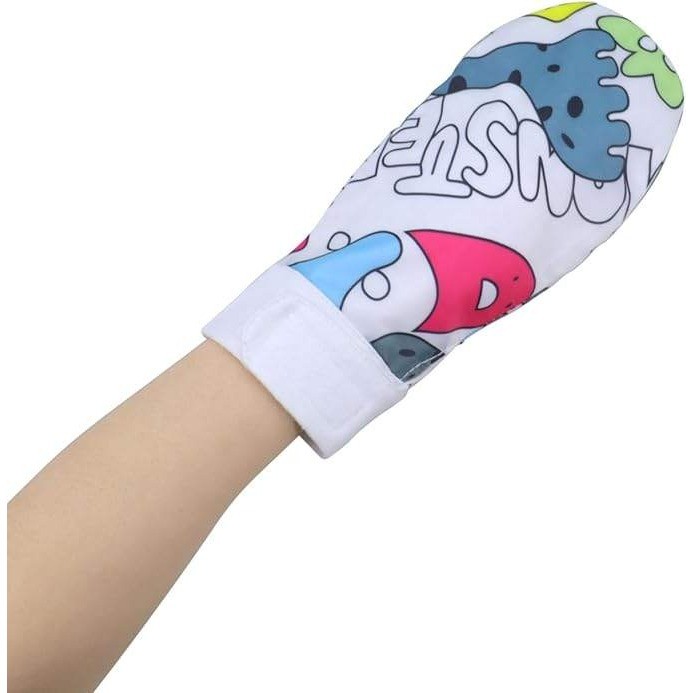 Kids Cartoon Print Safety Special Needs Mittens with Hook and Loop Closure
