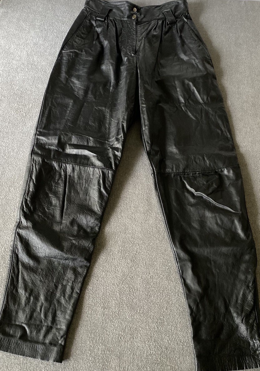 как выглядит Vintage Wilson s Leather Women s 10 Black Soft High Waist Zip-Up Pants USA 90s фото