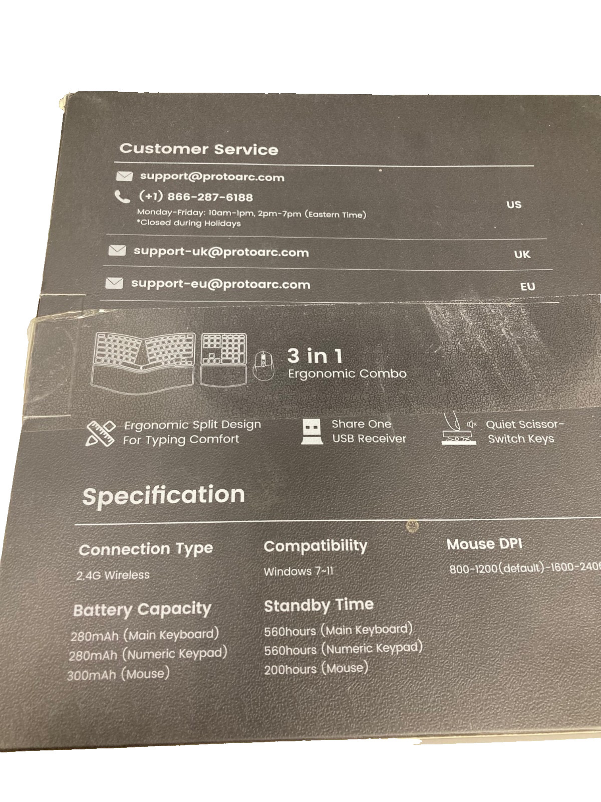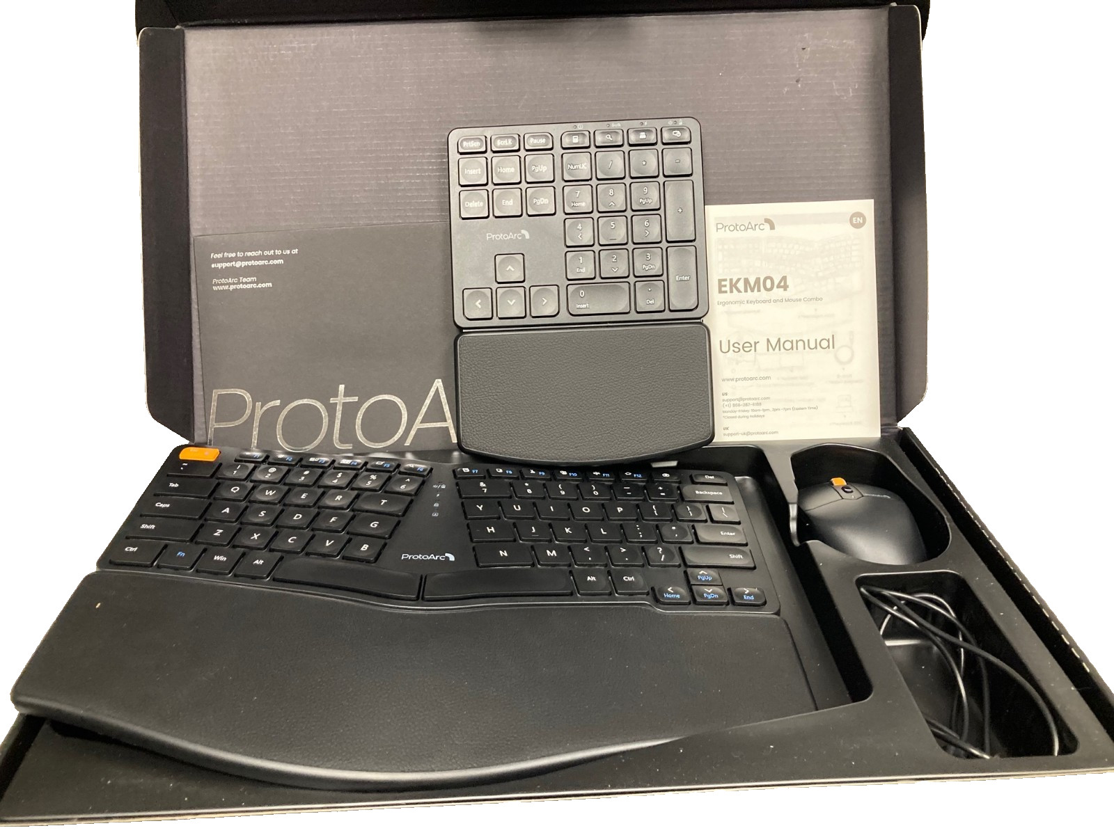 как выглядит ProtoArc EkM04 Keyboard Mouse Ergonomic Wireless Combo Split Design Black фото