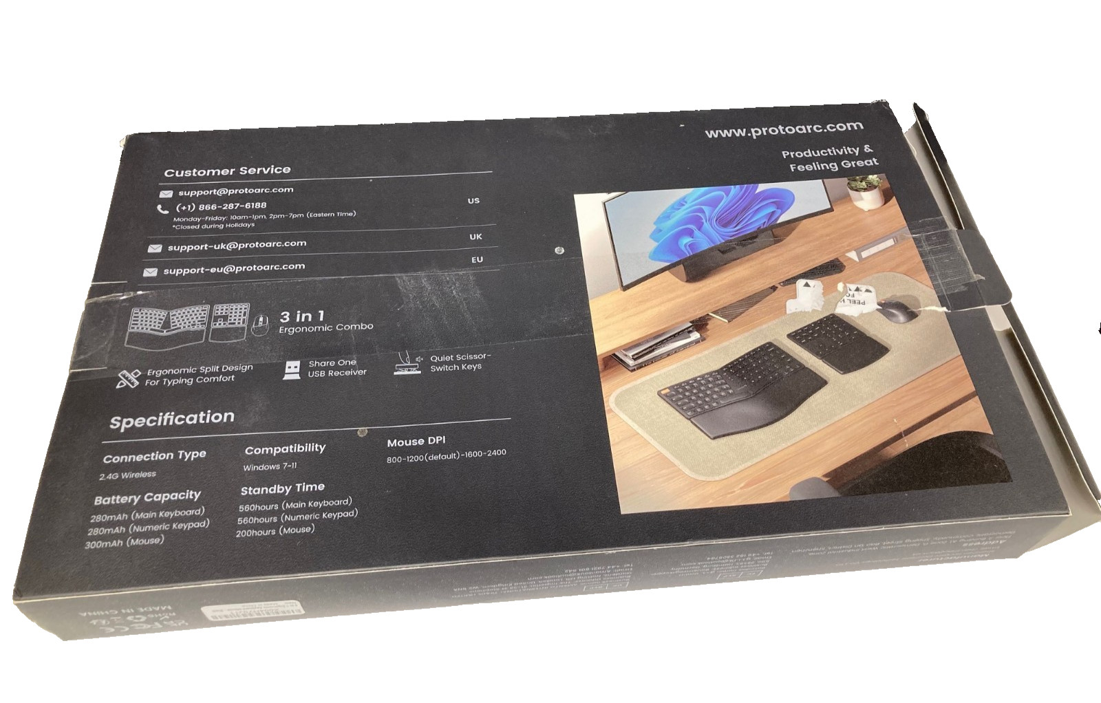 Особенности: Quiet Scissor-Switch Keys, 2.4 GHz Wireless Connection, Hard Palm Rest with Leather Surface, Separate Numeric Keypad, Ergonomic Split / Curved Design