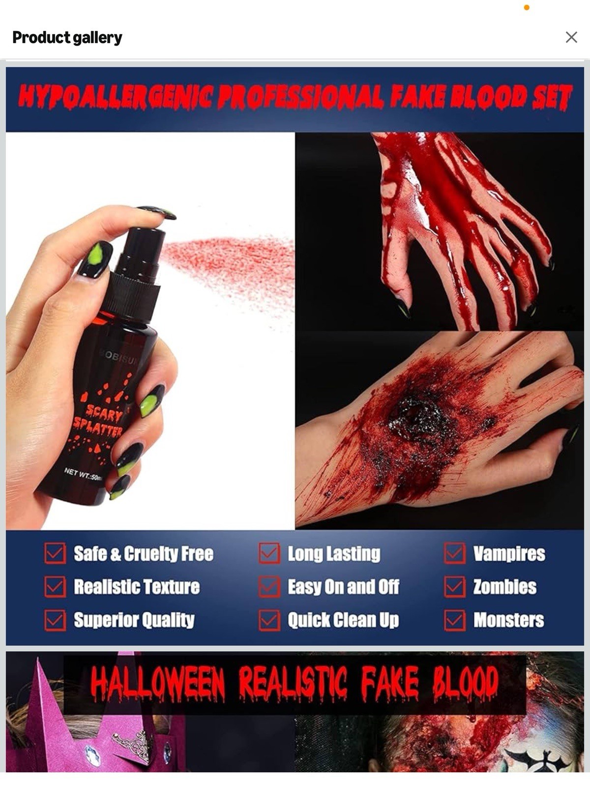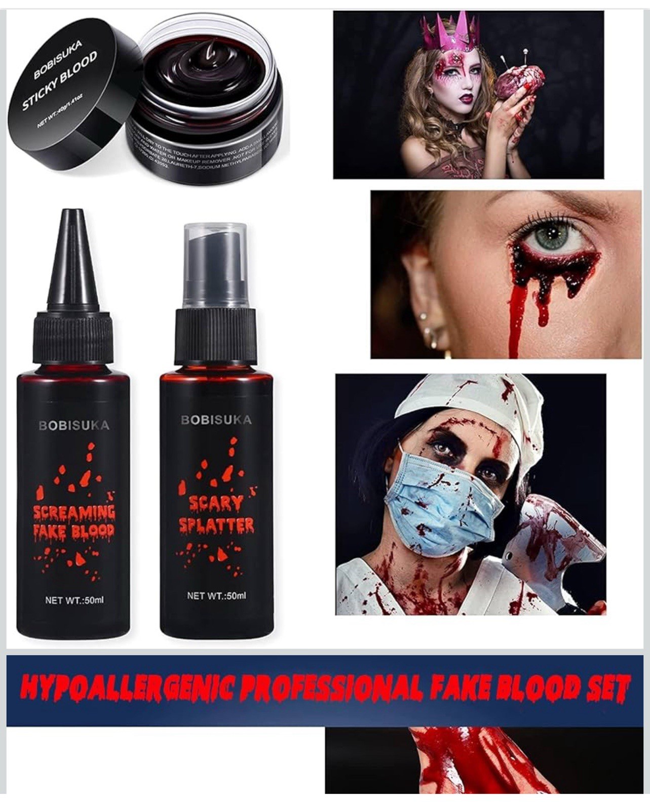 как выглядит BOBISUKA 3PCS Halloween Fake Blood Makeup Kit - Coagulated 1.41oz Spray 1.76oz фото