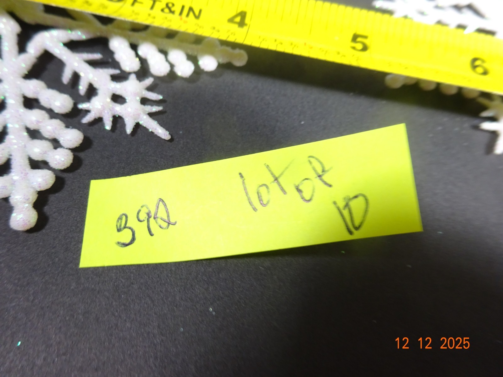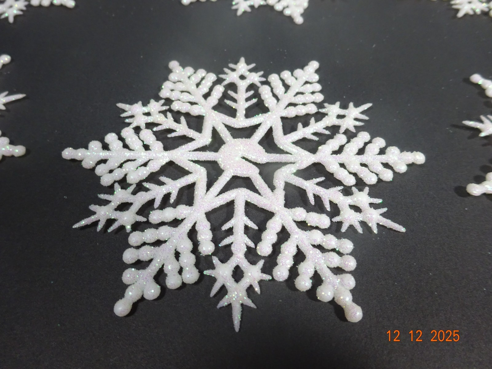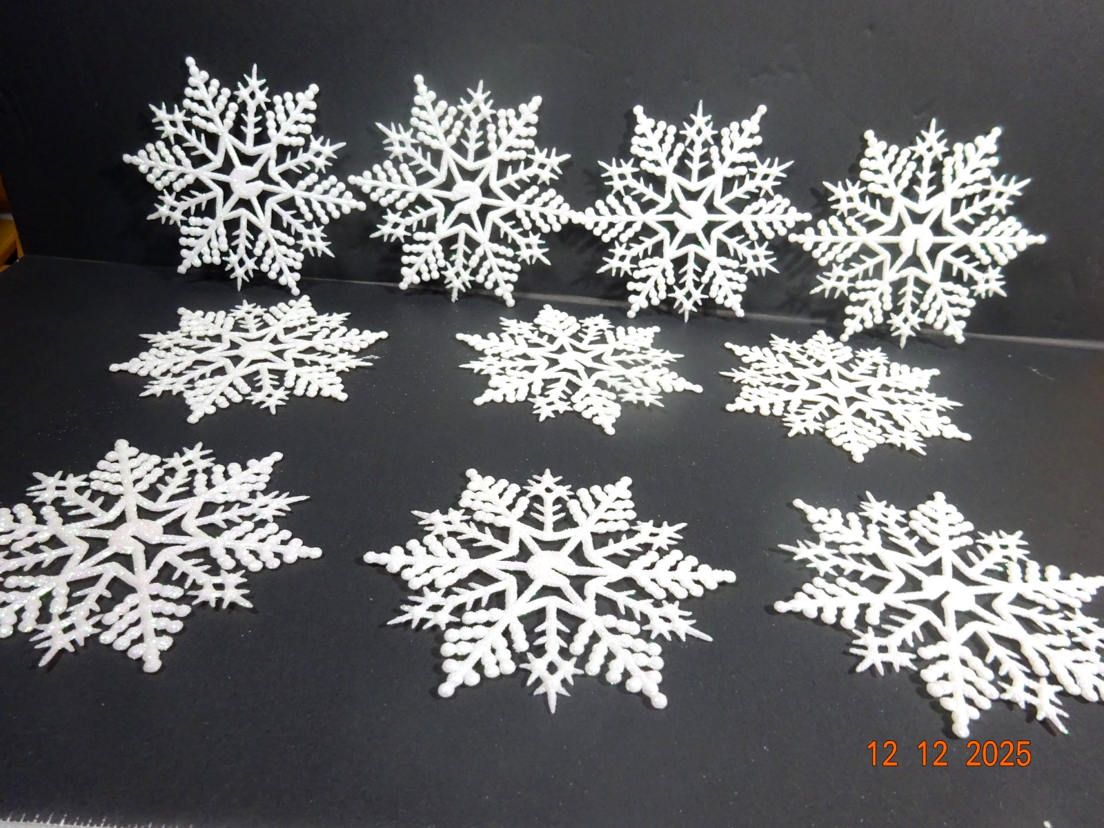 • Set of 10 White Glittered SNOWFLAKES Ornaments 4"w Plastic and Glitter 392