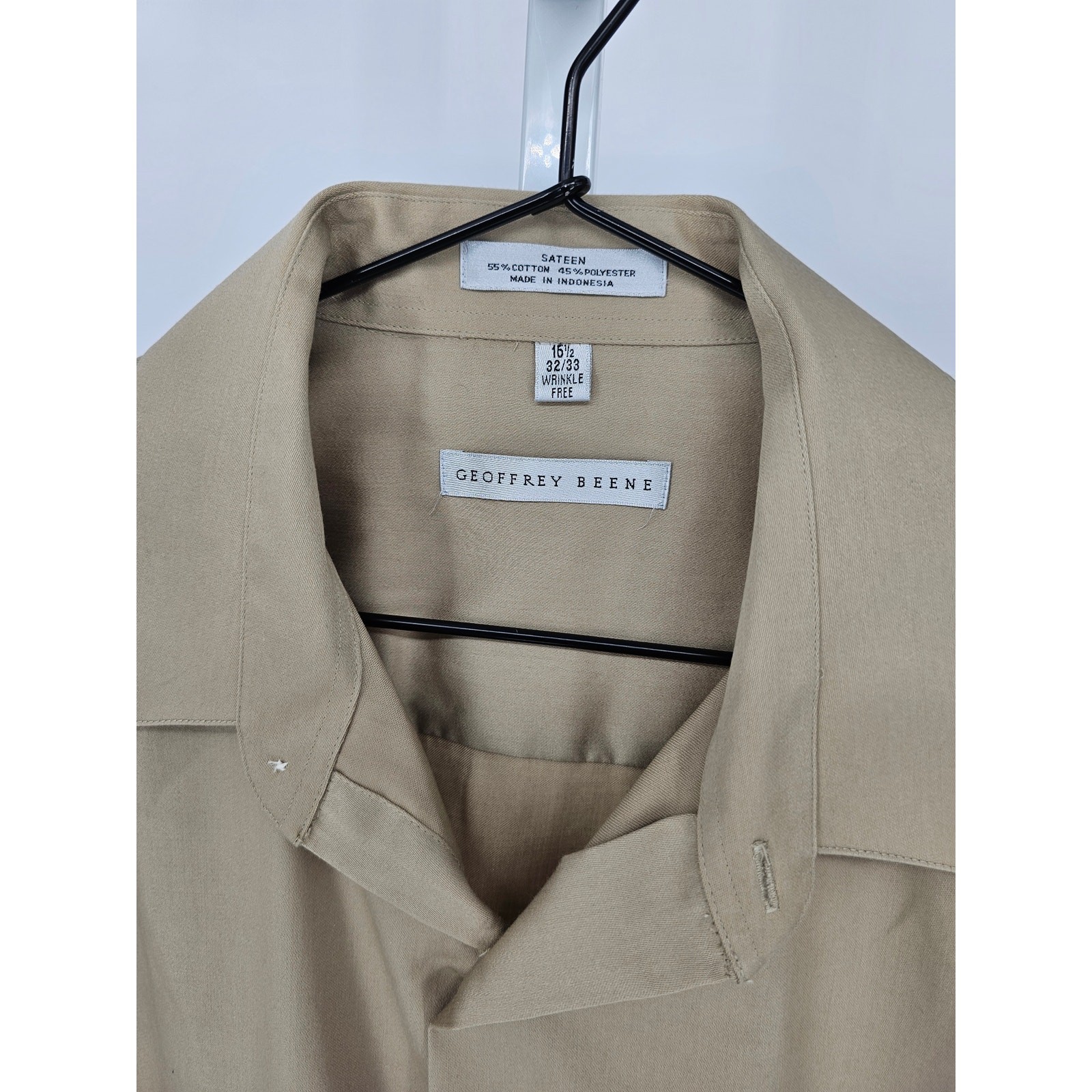 Geoffrey Beene Mens Sz 16 1/2- 32/33 Long Sleeve Sateen Dress Shirt Tan