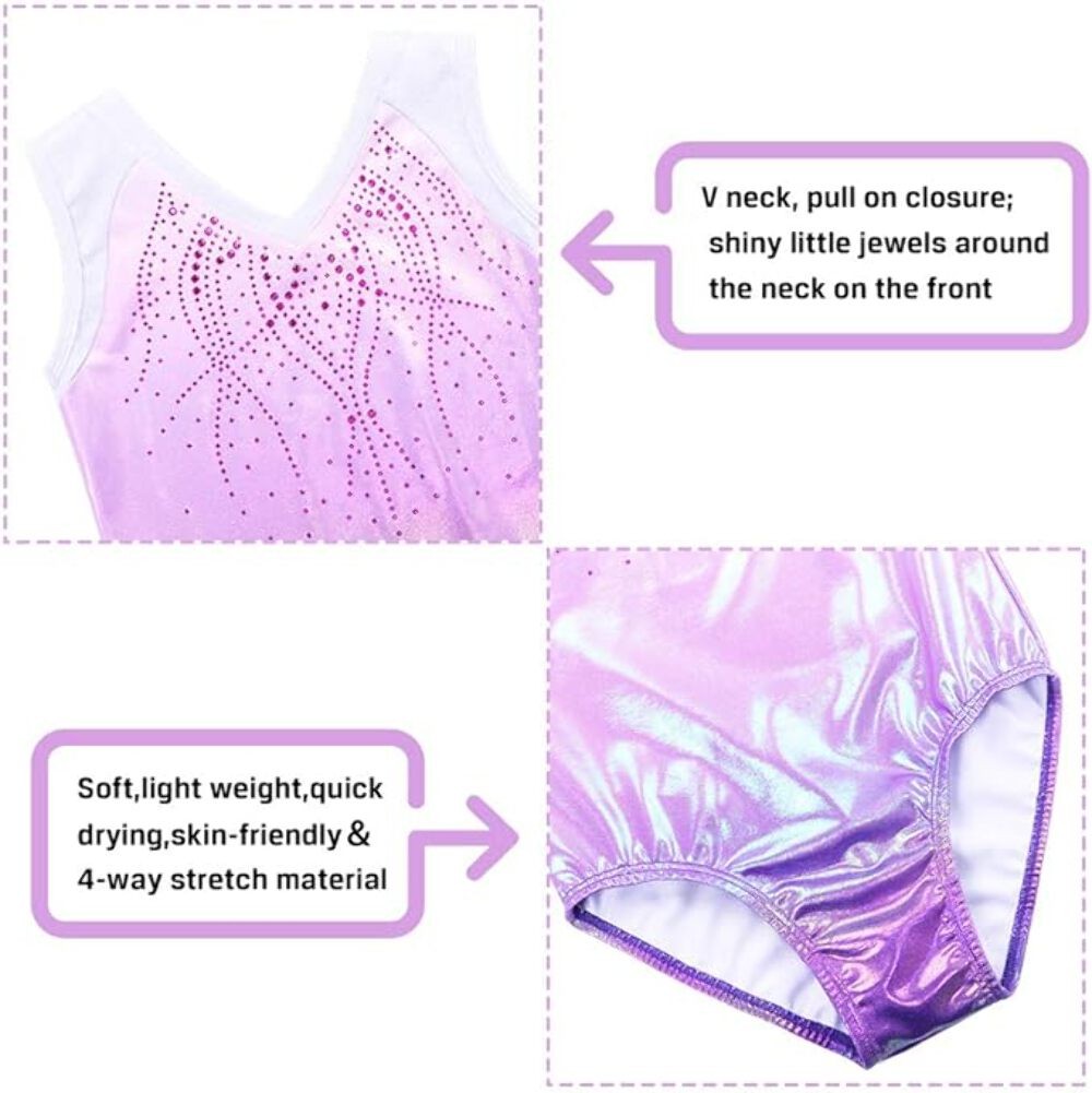 Gymnastics Dance Leotard BAOHULU Purple Large Child Metallic Acro Lycra Rhinest