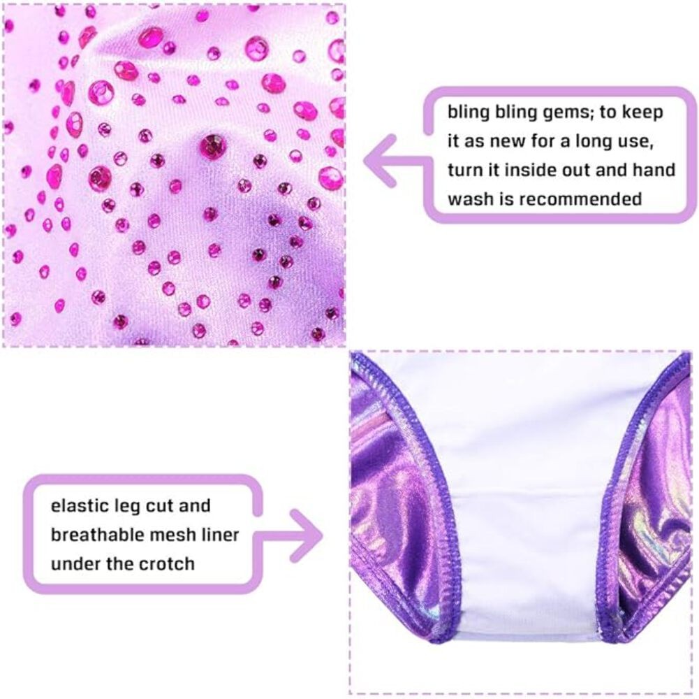 как выглядит Gymnastics Dance Leotard BAOHULU Purple Large Child Metallic Acro Lycra Rhinest фото