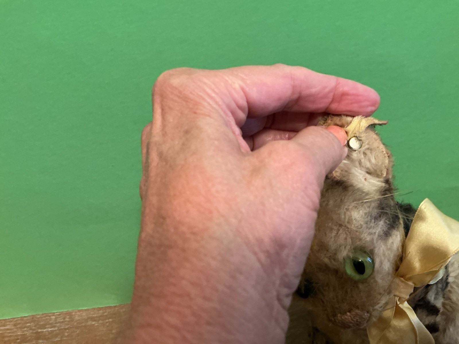 как выглядит Rare Vintage Steiff Sitting Susi Cat Blank Button Circa 1948-1950 фото