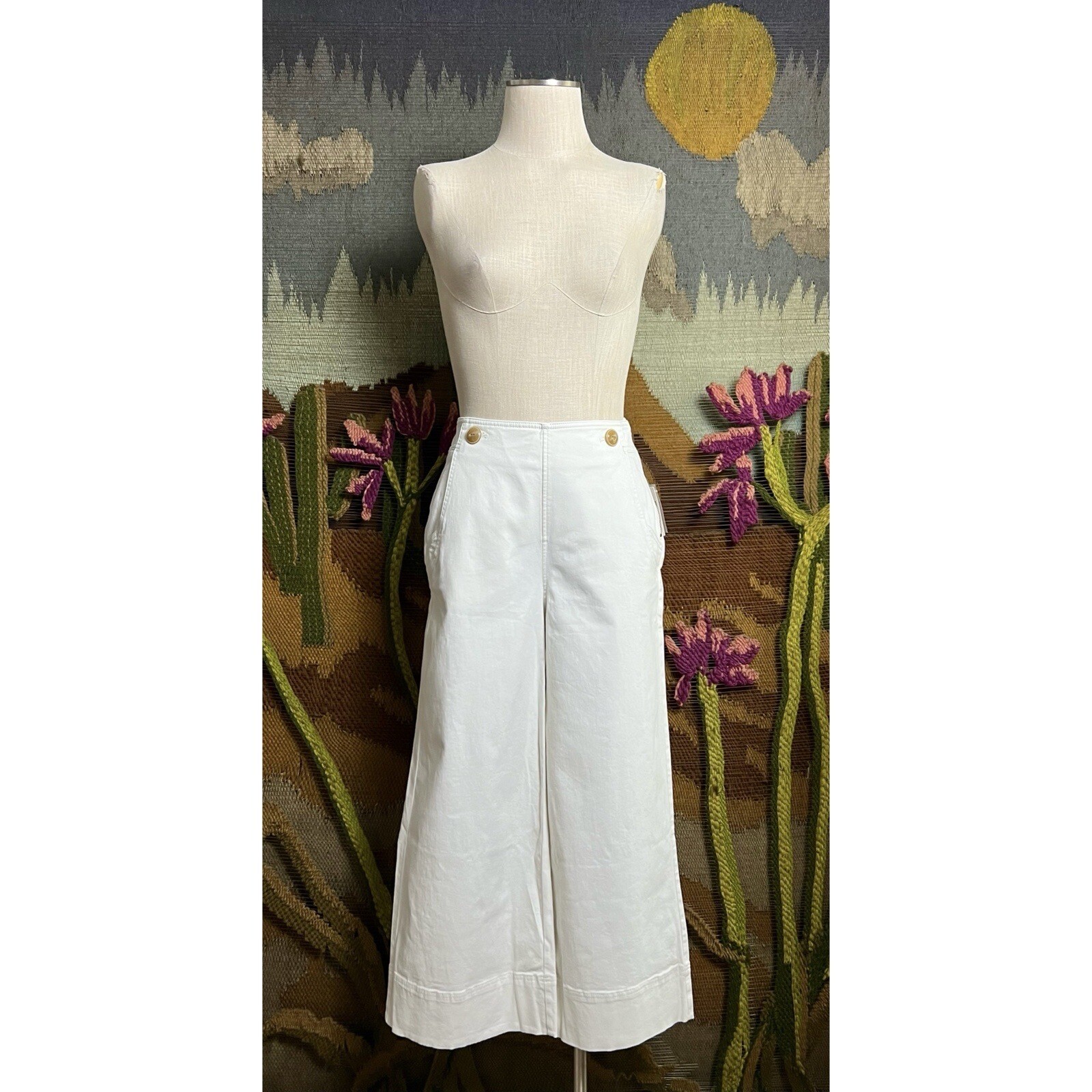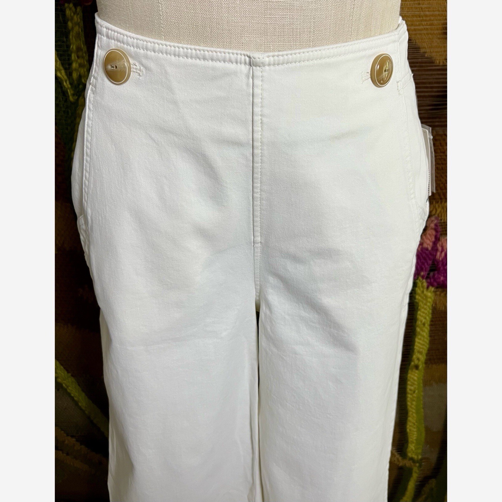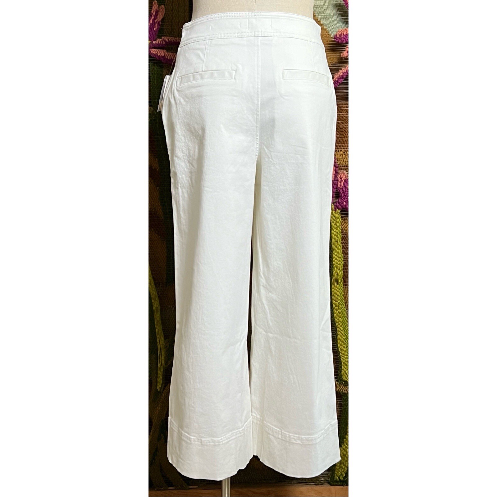 Anthropologie Maeve Button White Wide Leg Trousers Pants 10