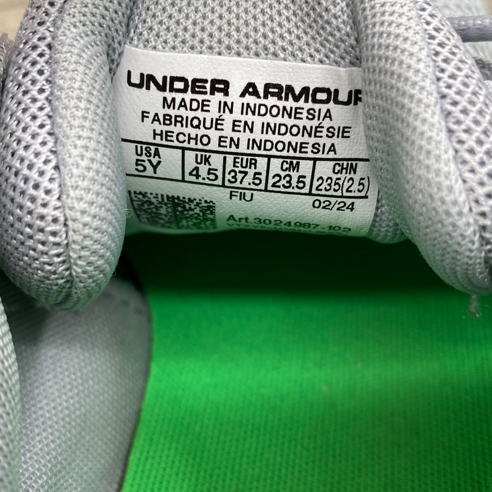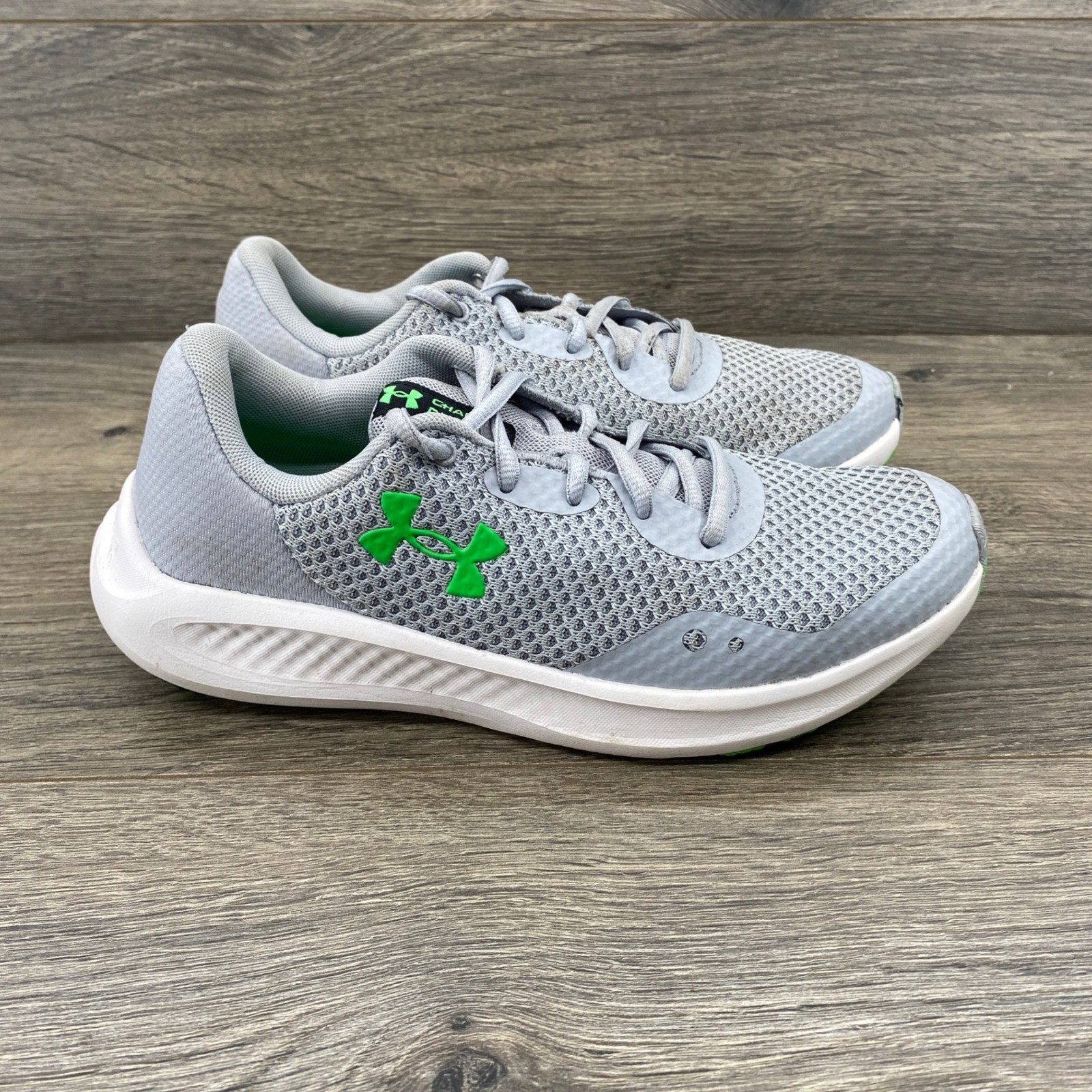 Under Armour Boys Size 5Y Gray Green Athletic Running Shoes Charged Assert 10