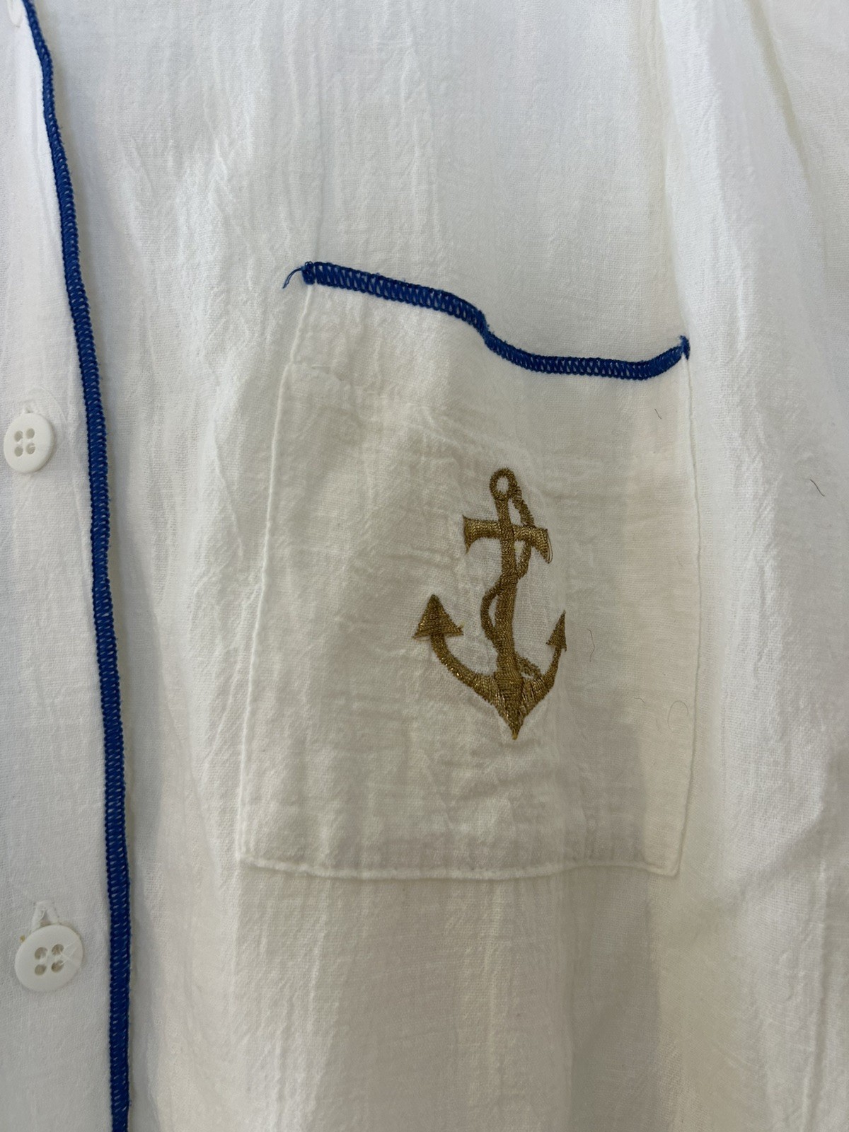 как выглядит Vintage White Anchor Sirena Medium Swimsuit Cover Up Cotton фото