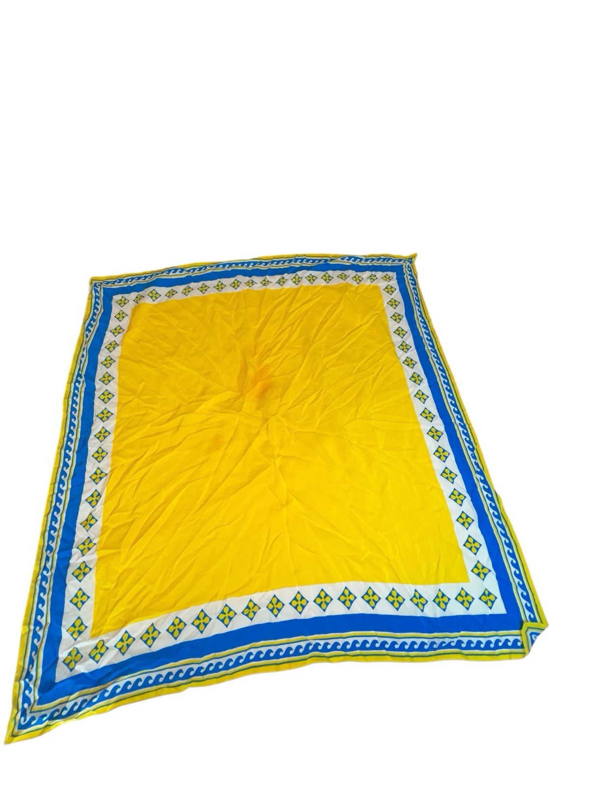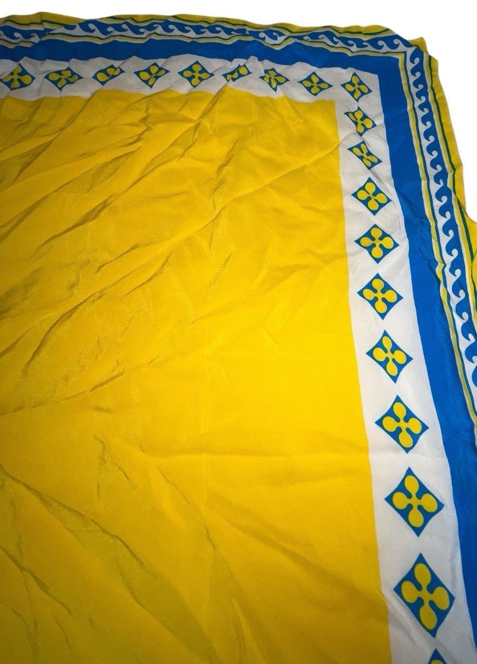 Vintage Silky Scarf Yellow Blue Geometric Square 31 Mod MCM Wear