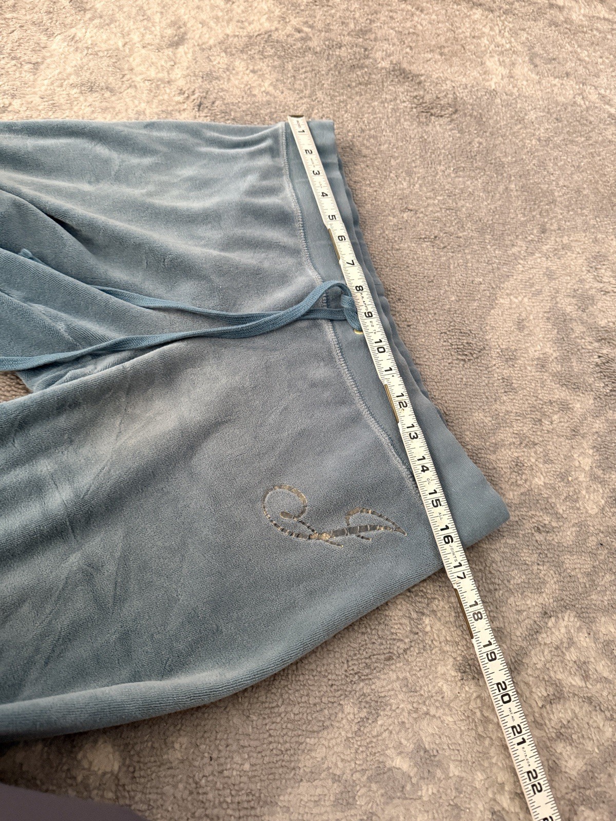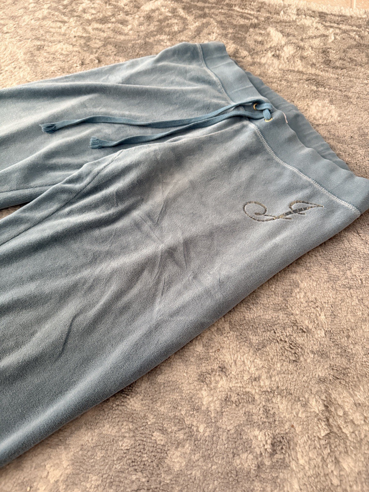 как выглядит 90s Vintage Juicy Couture Aqua Velour Track Pants Made in USA Y2K Size Medium фото