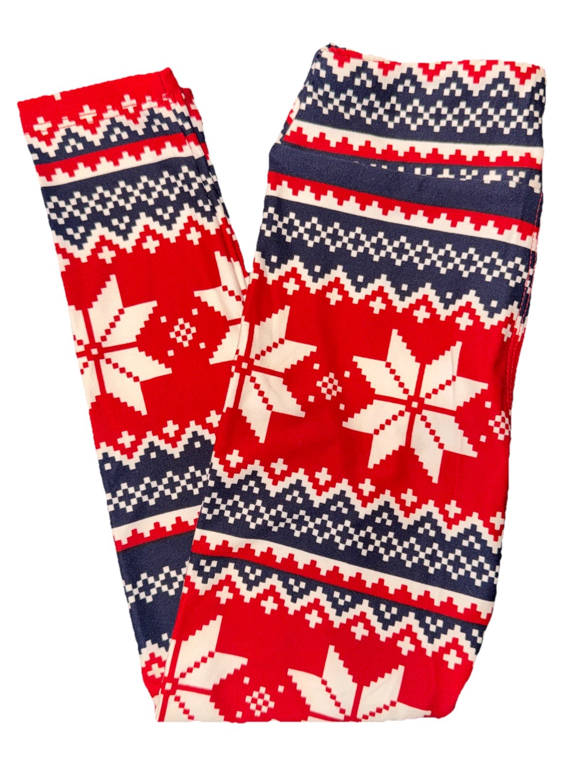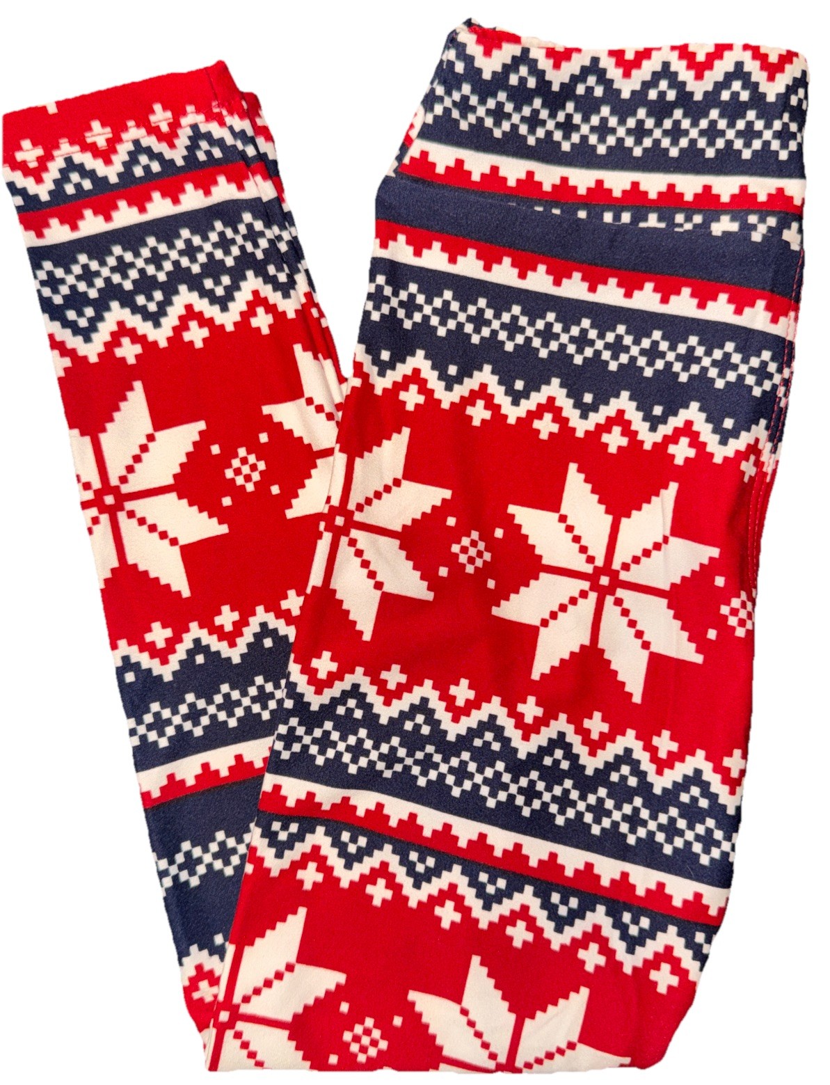 NEW LuLaRoe Kids S/M 2-8 Navy Deep Red White Fair Isle Snowflake Leggings