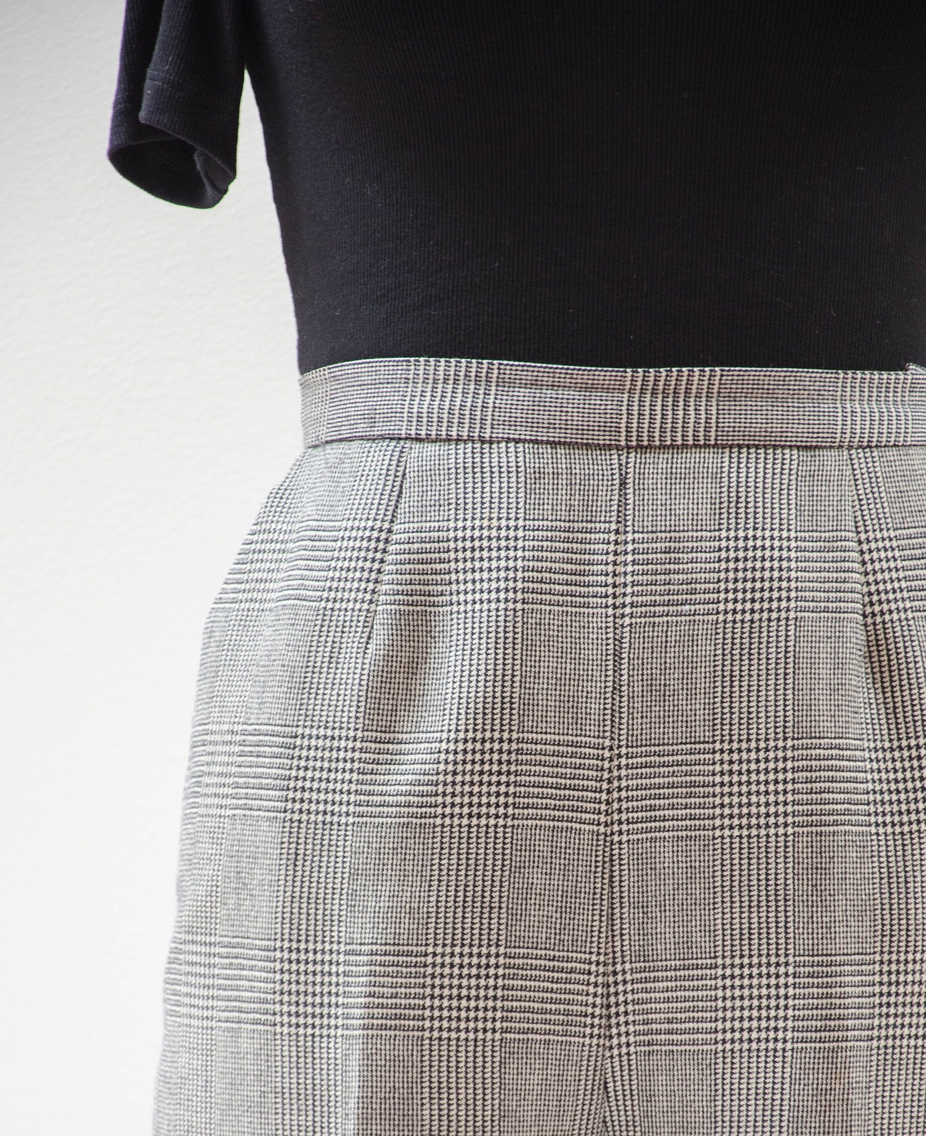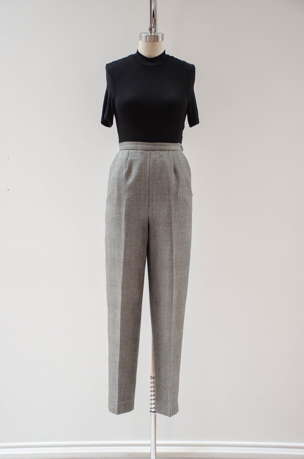 vintage high waist black white houndstooth checkered plaid wool trousers