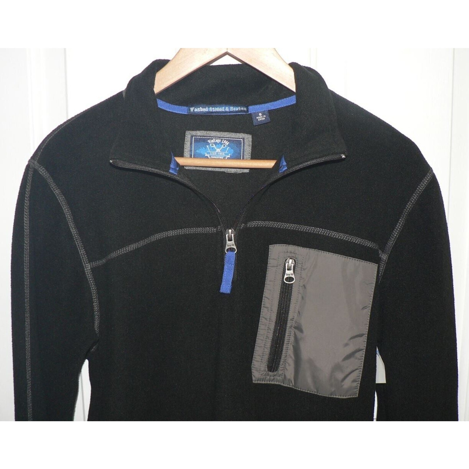 как выглядит Vintage 1946 Mens Quarter Zip Fleece Long Sleeve Pullover Sweater in Black SM фото