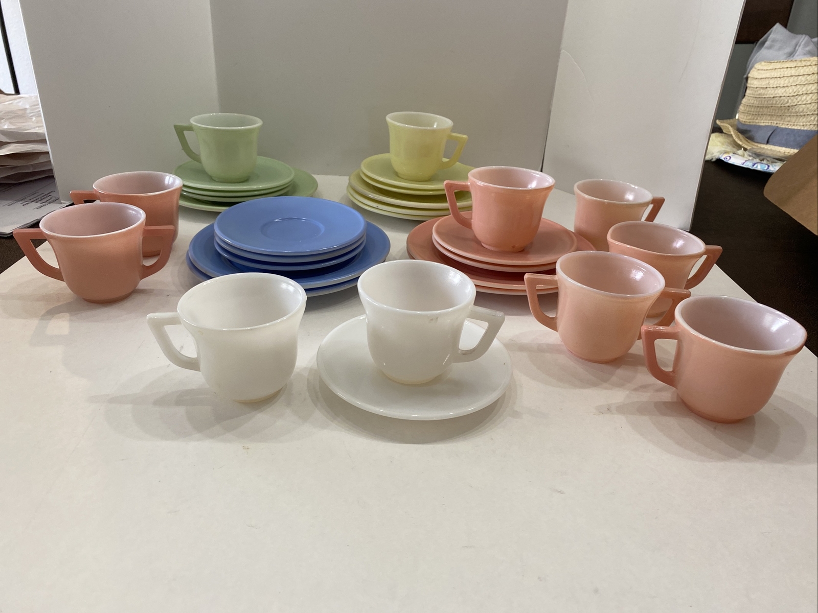 Childrens Hazel Atlas Moderntone 1950s Little Hostess 31 Pc Glass Tea Set