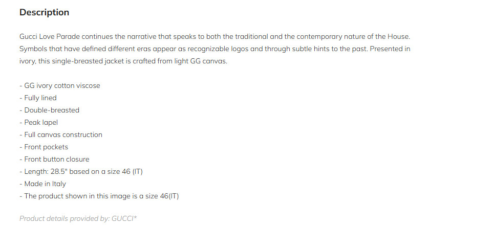 как выглядит 46IT - Gucci GG Cotton Viscose formal jacket blazer BNWT - 698737 фото