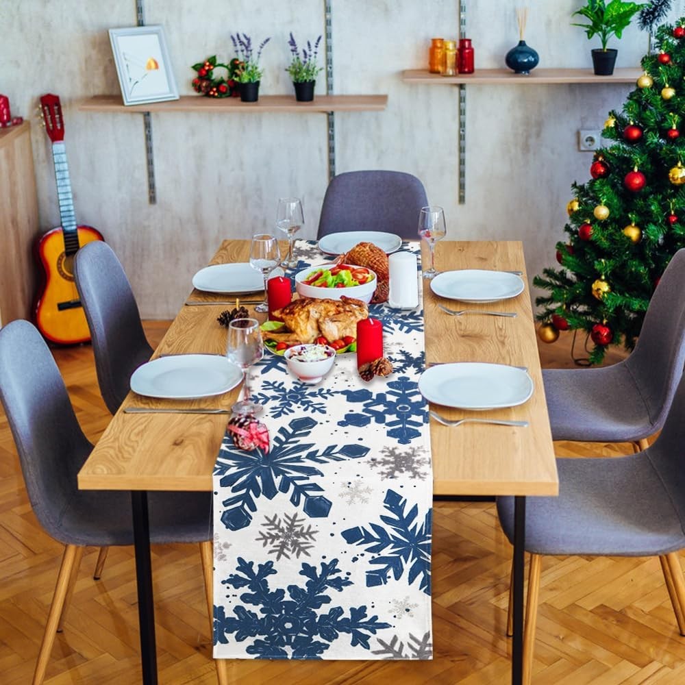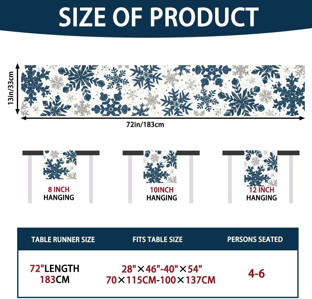 Christmas Winter Table Runner Blue Silver Snowflakes 13x72 Farmhouse