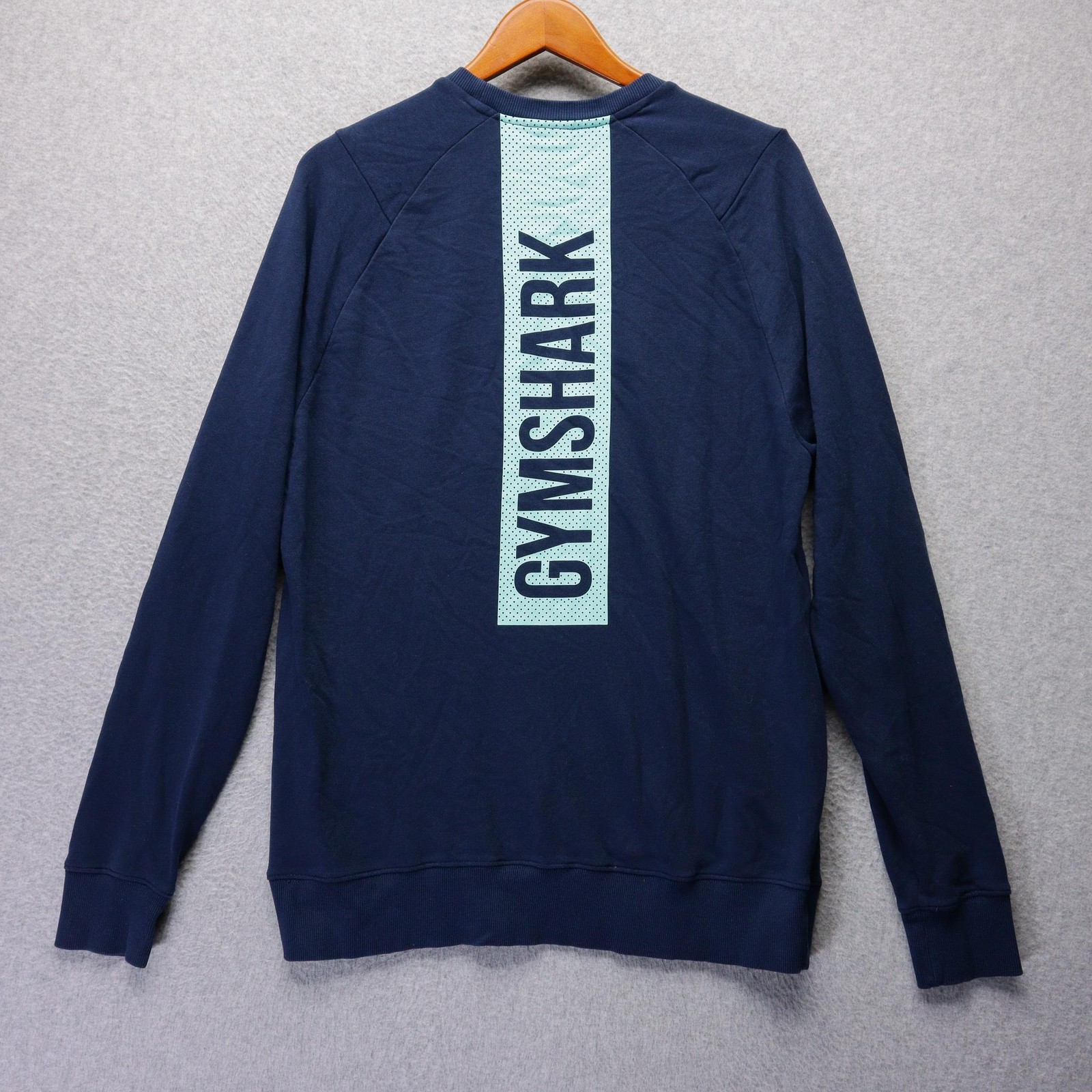 Gymshark Sweatshirt Mens M Navy Blue Crewneck Gym Pullover Athletic Aqua Logo