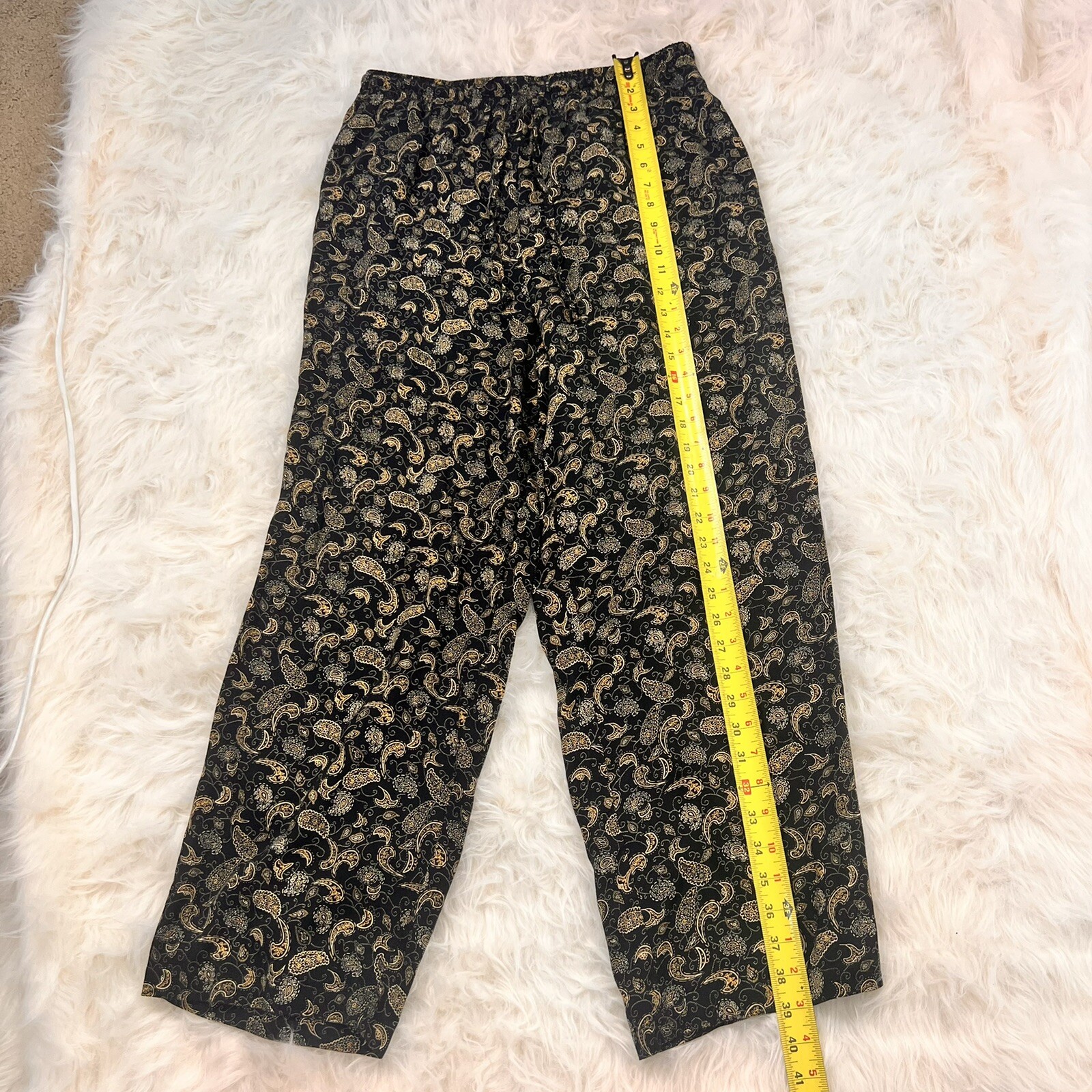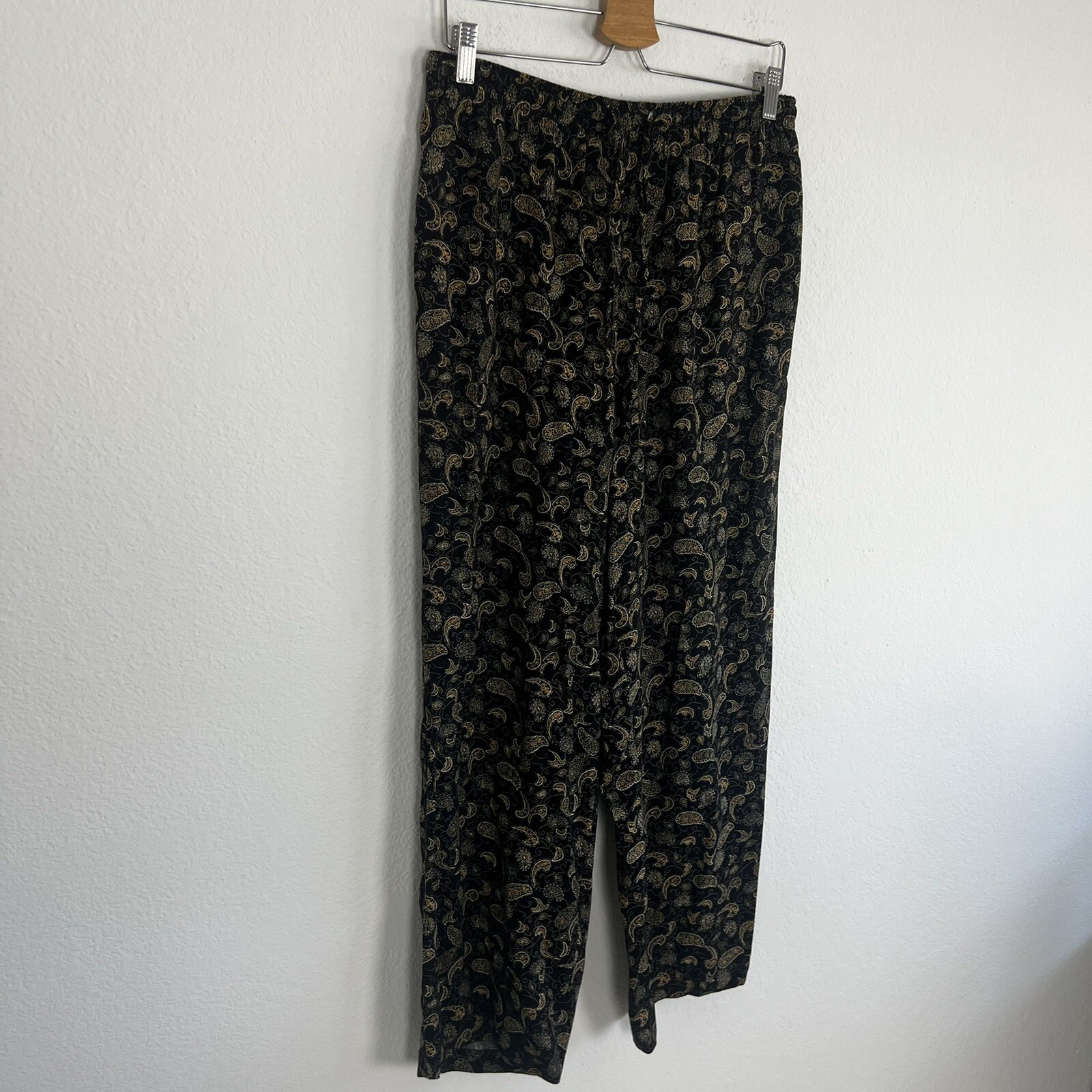 как выглядит Sag Harbor Vintage 90s Black Paisley Pull On Elastic Waistband Casual Pants Med фото