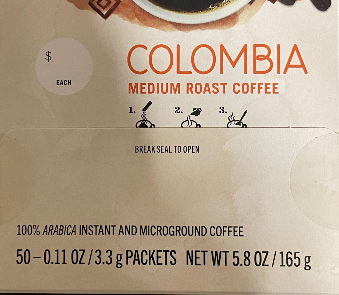 Starbucks Via Instant Brew Colombia Instant Coffee Box - 50 Pieces