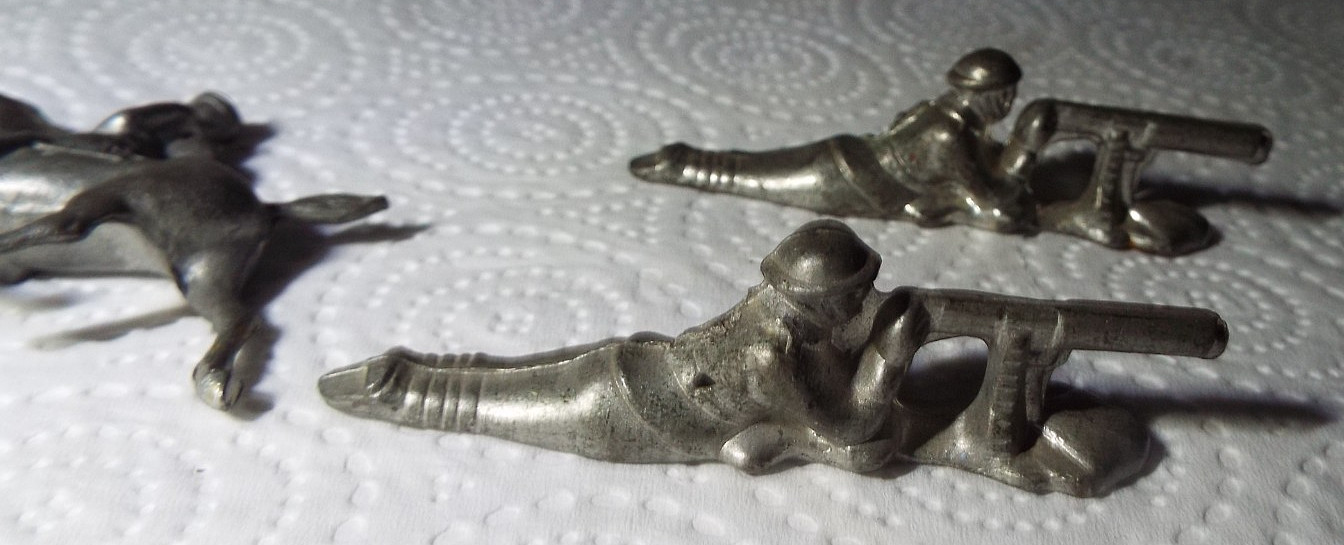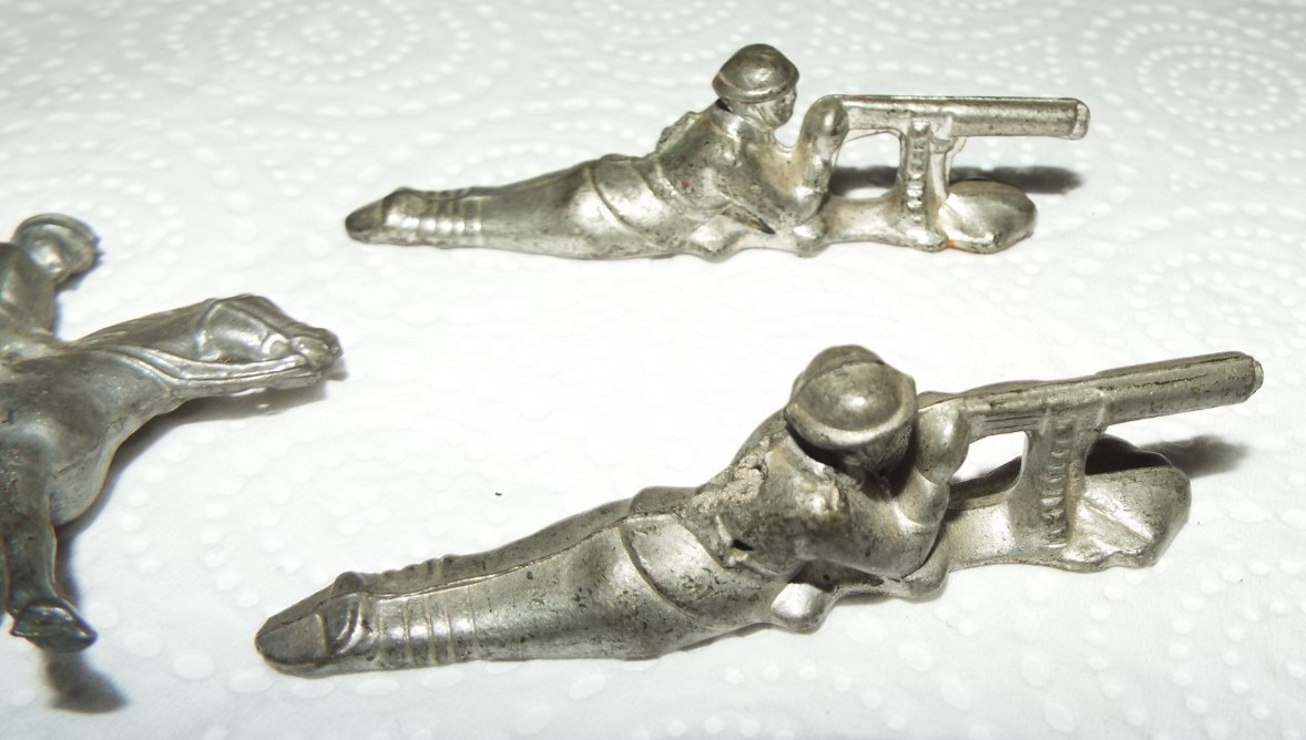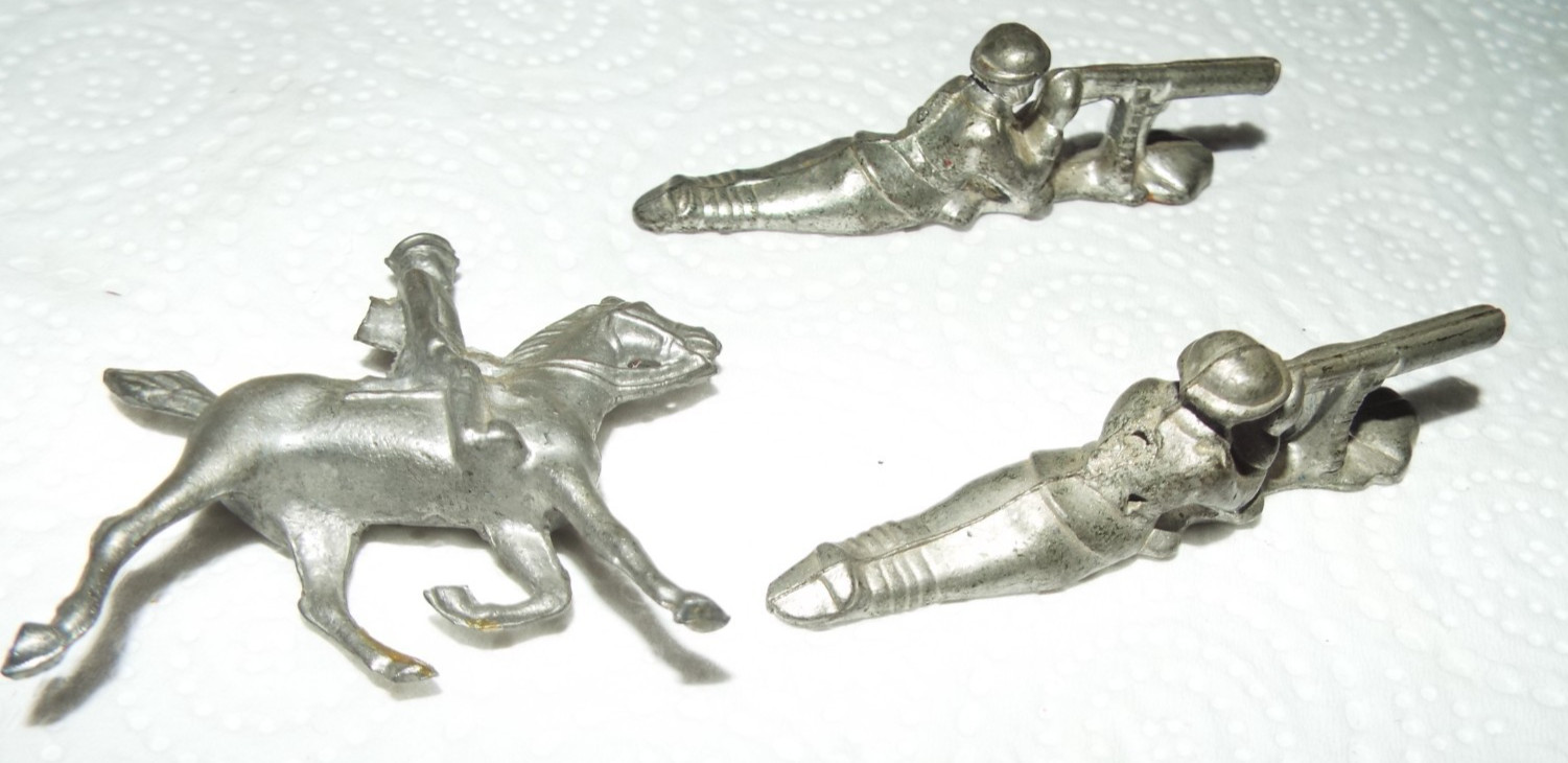 3 ANTIQUE/VINTAGE LEAD WWI TOY SOLDIERS ONE ON HORSEBACK UNMARKED READ