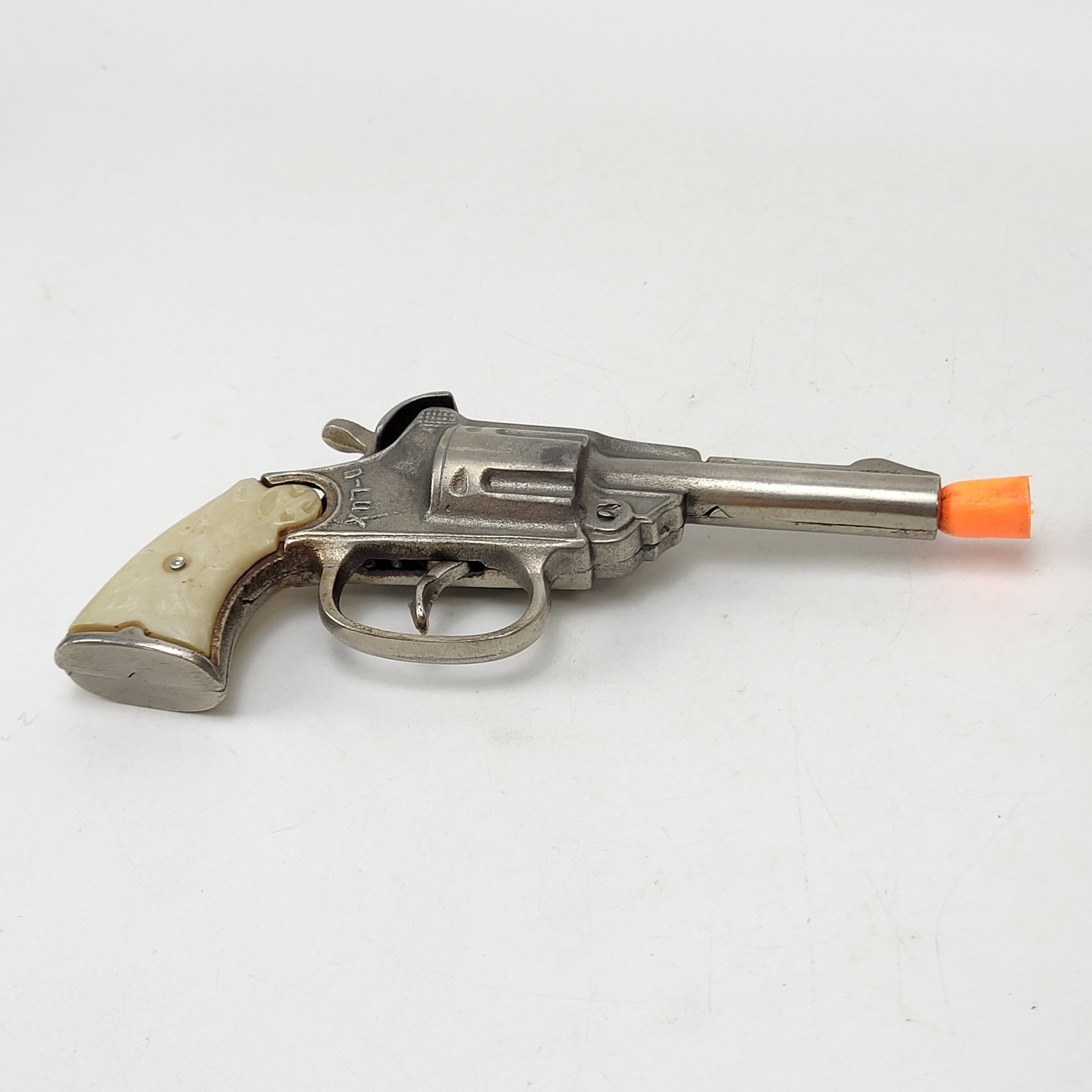 как выглядит ANTIQUE KILGORE D-LUX CAST IRON CAP GUN 1935 2 Star 6 1/8" D1.1 фото