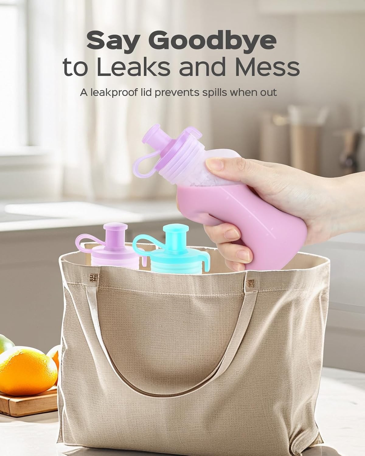 Silicone Reusable Baby Food Pouches with Straws, 4 Pack Leakproof colorful