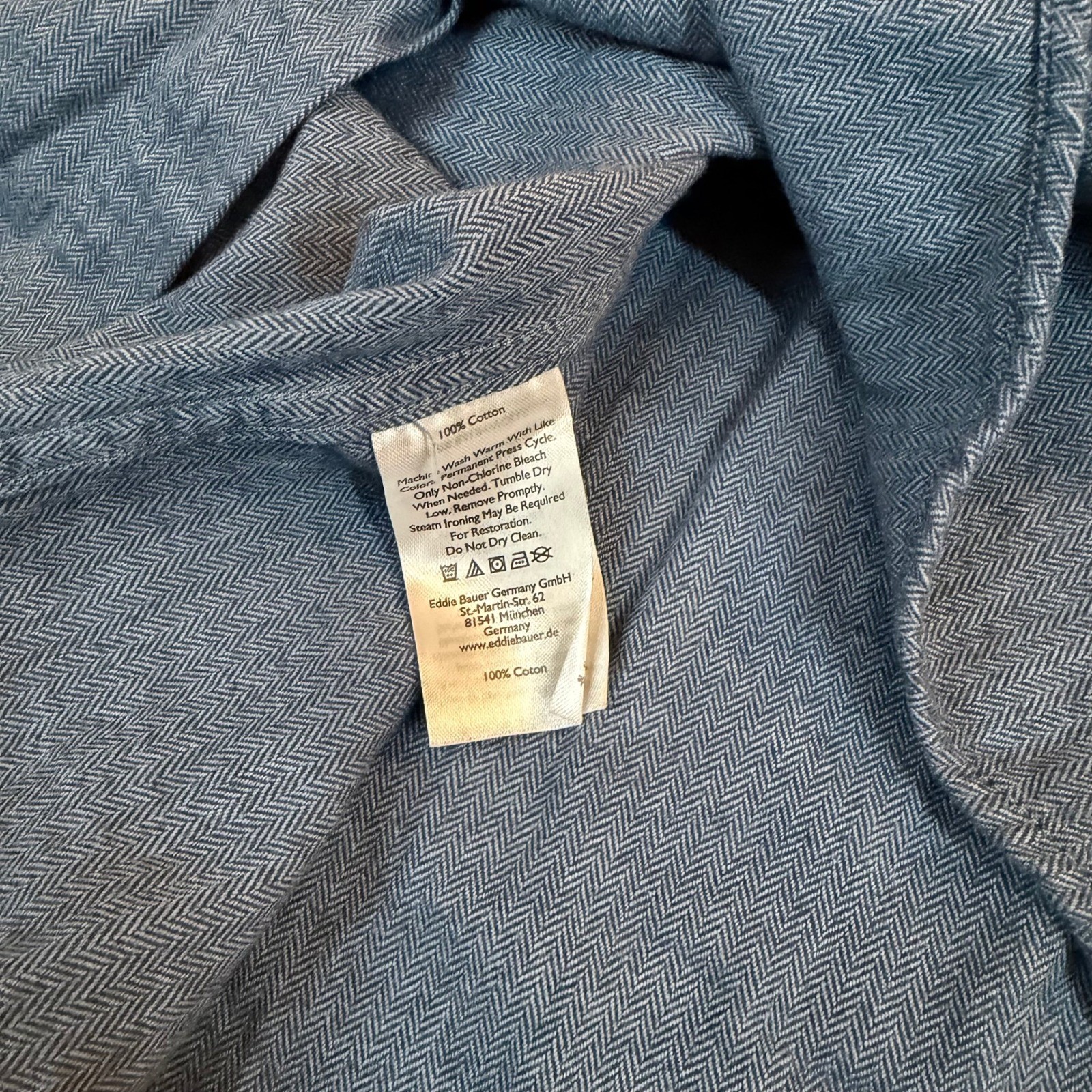 Eddie Bauer Classic Fit Long Sleeve Button Down Shirt Blue Herringbone Mens XL