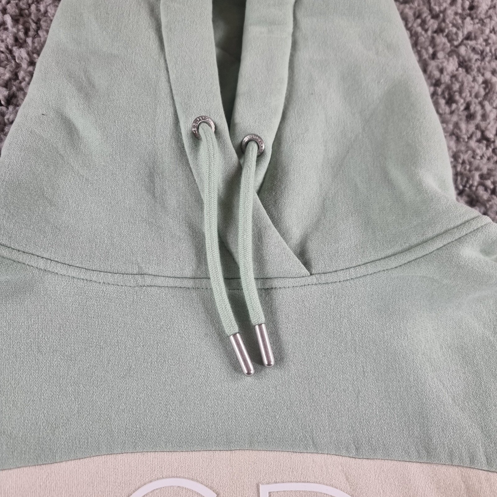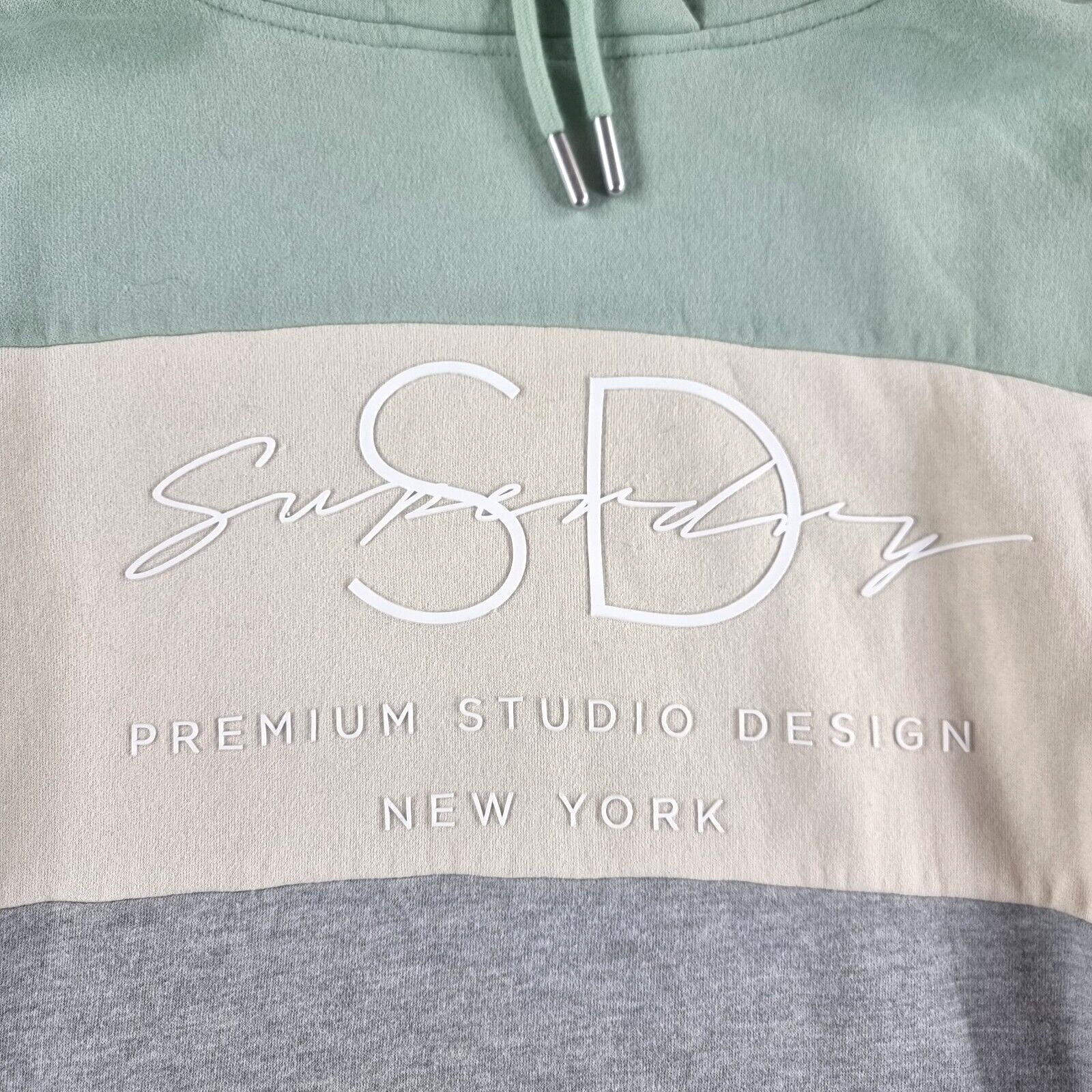Superdry Hoodie Womens 14 Pullover Premium Studio Green Grey Cream