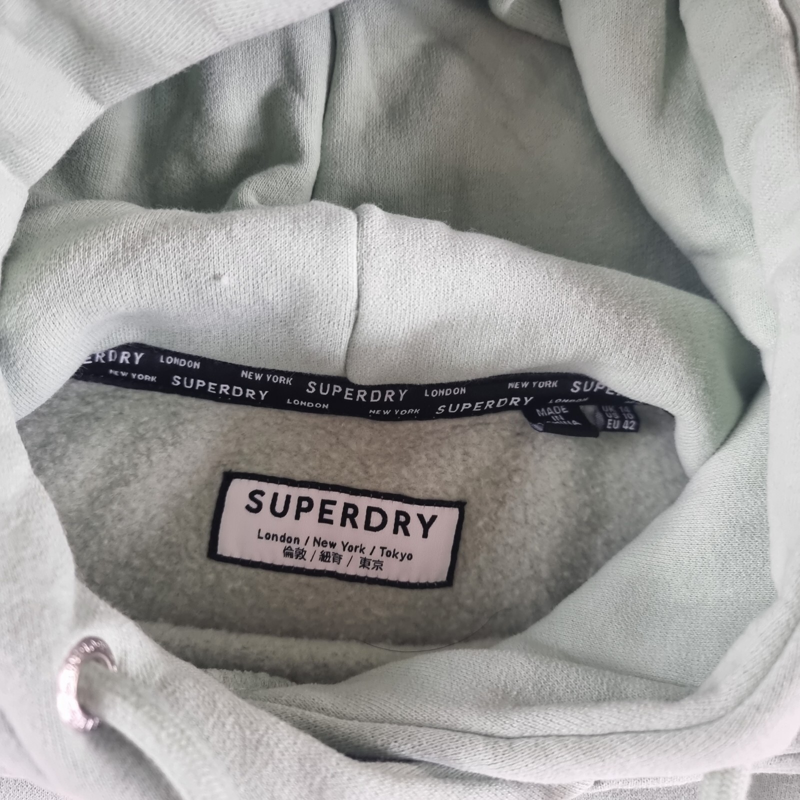 как выглядит Superdry Hoodie Womens 14 Pullover Premium Studio Green Grey Cream фото