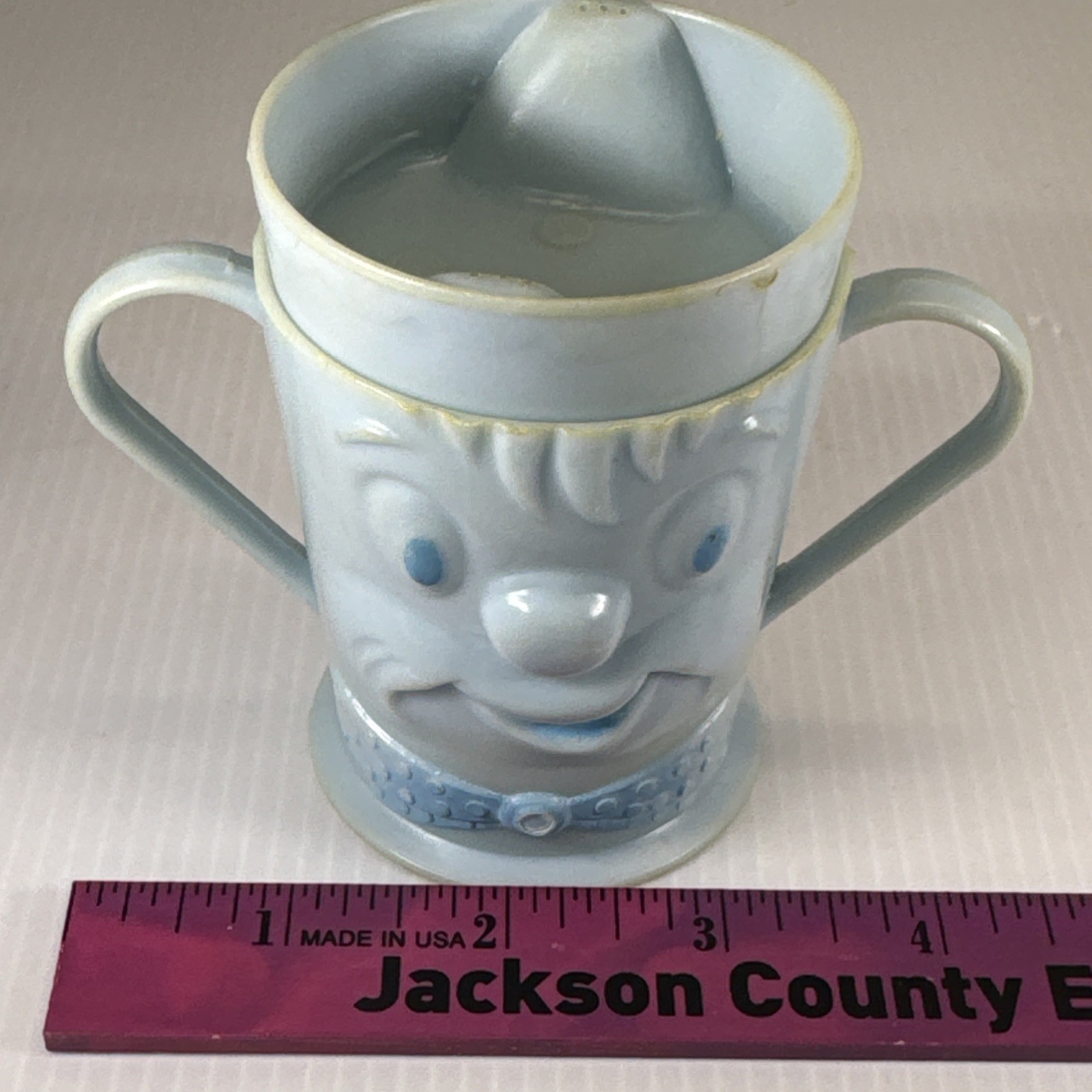 VTG The Weaning Cup Corp Blue Sippy Cup With Lid Kids Face Baby Melamine Plastic