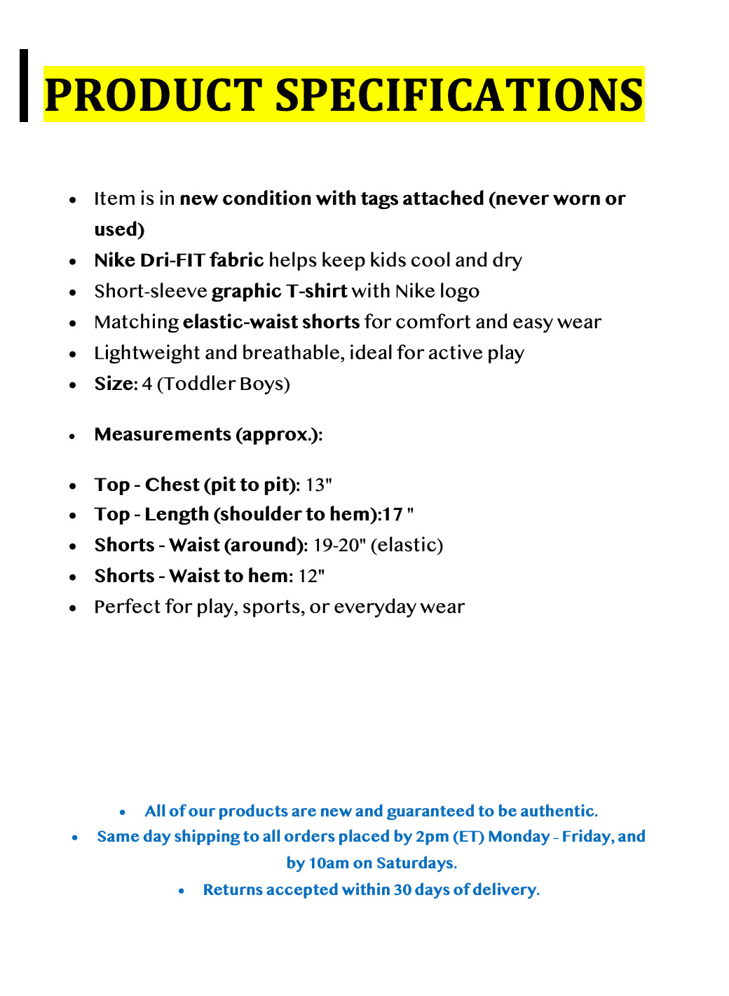 Nike Boys Dri-FIT T-Shirt Shorts Outfit Set Size 4 Black Gray Athletic Sporty