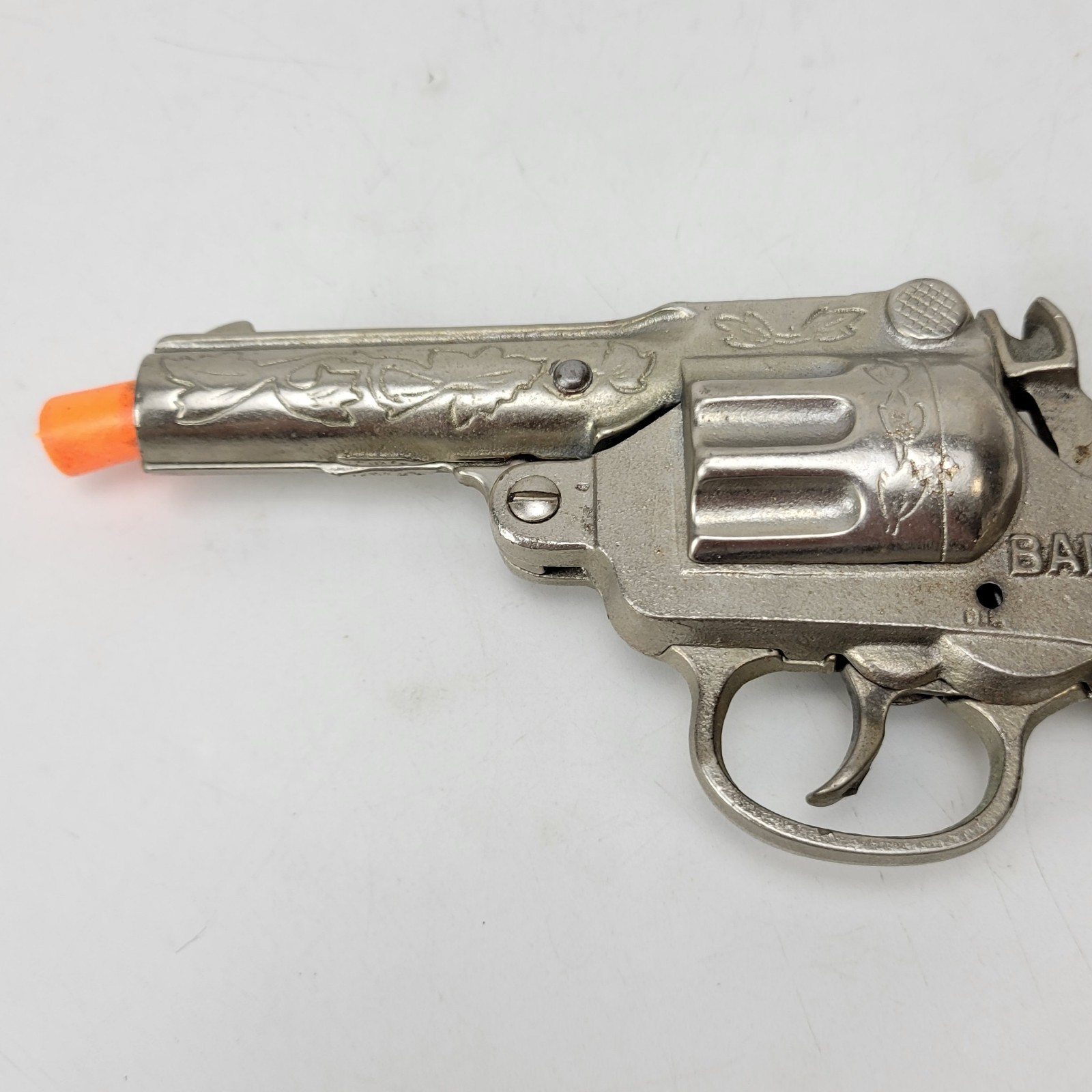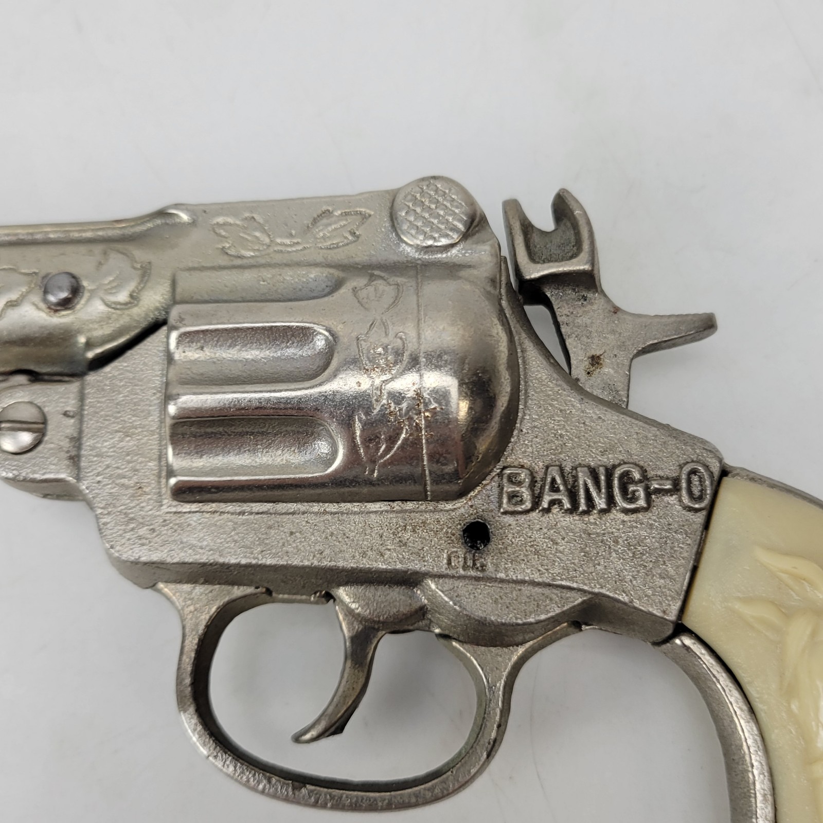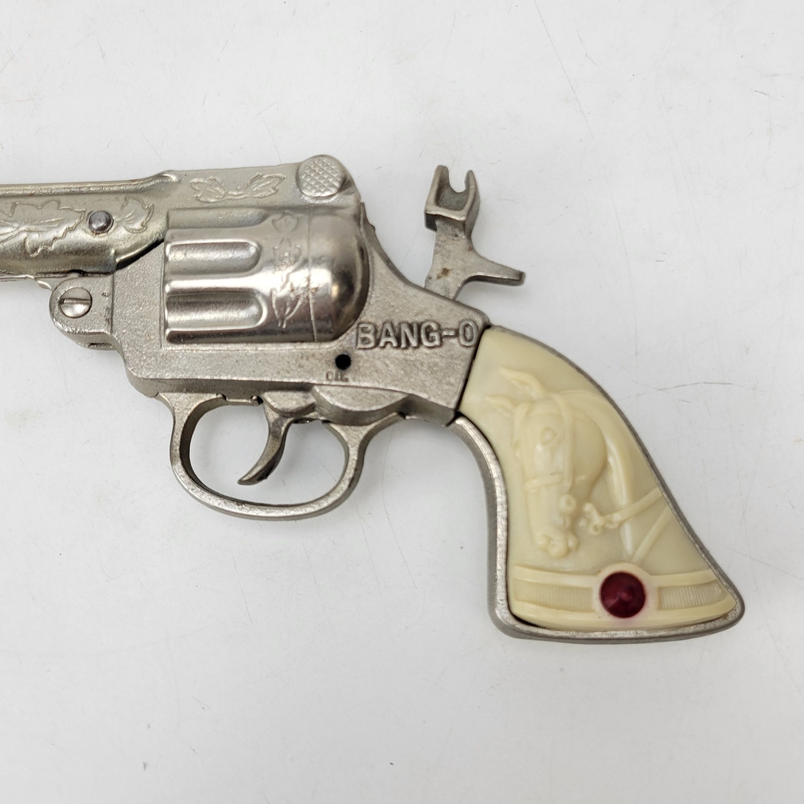 ANTIQUE STEVENS BANG-O CAST IRON CAP GUN 1940 B5.1.4 Red Jewels Needs Spring