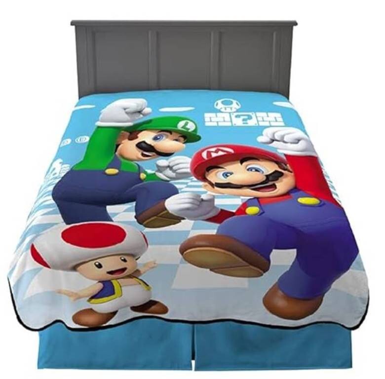как выглядит Super Mario "Game Kings" Kids 62" x 90" Twin/Full Blanket-AB08P428M5F9 фото