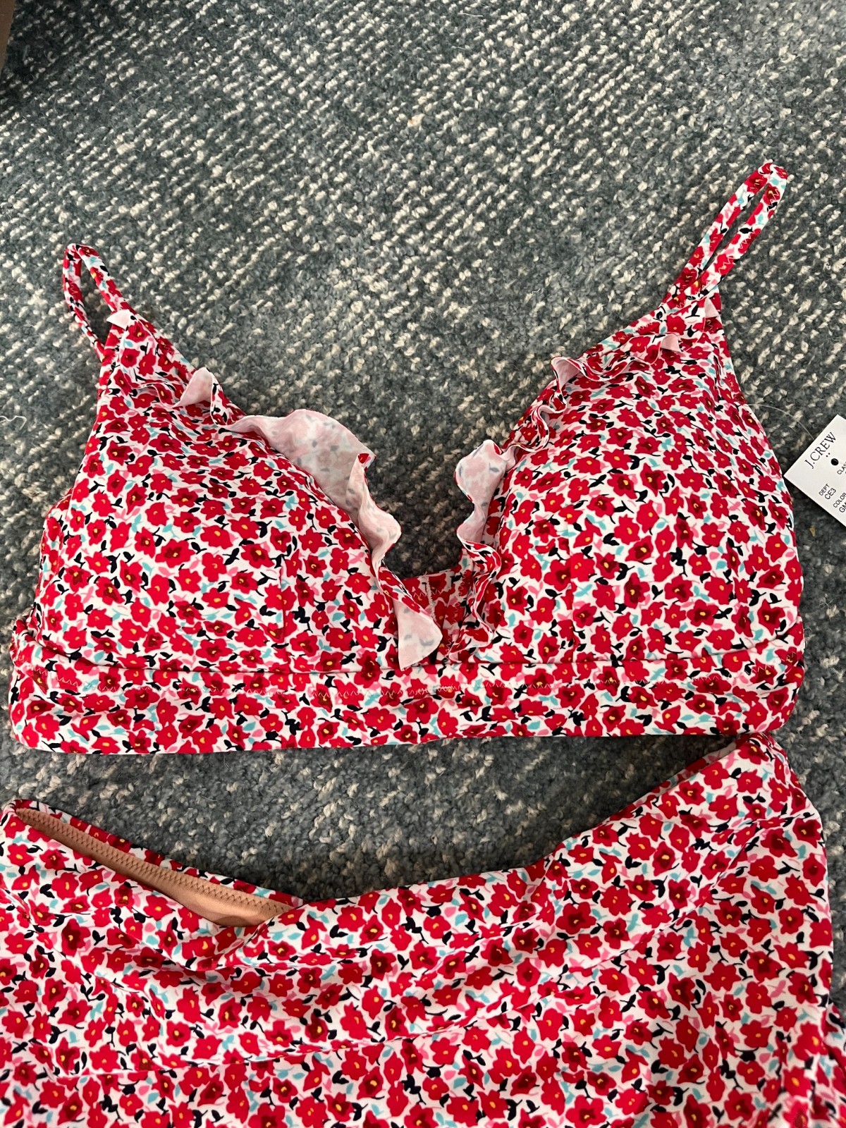 как выглядит NWT Cute J. Crew SMALL Bikini Top High Waisted Bottom Red Floral 54.50 фото