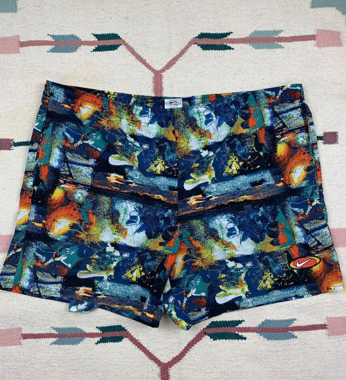 VTG 90s Nike Abstract All Over Print Swim Shorts Sz L X 5.5' Inseam AOP Lined