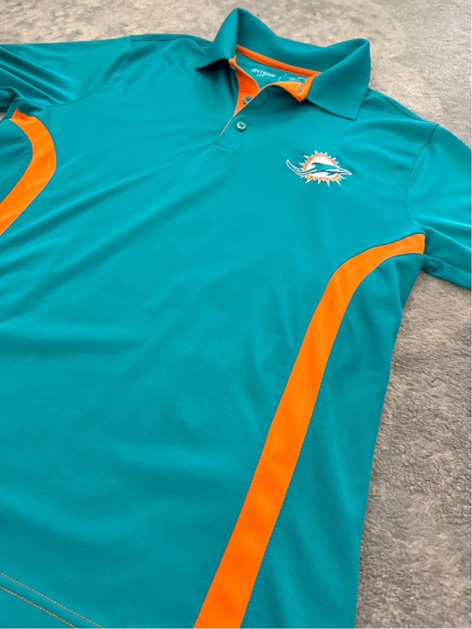 как выглядит Miami Dolphins Polo Shirt Teal Orange Logo NFL Mens Medium Football фото