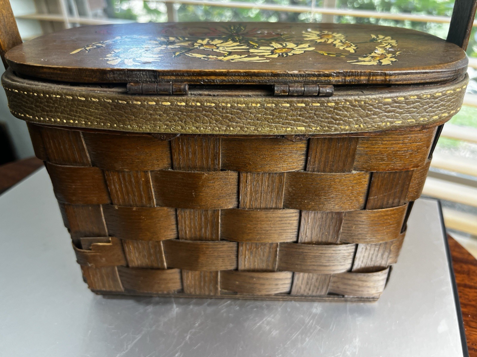 Caro-Nan Casual Colony woven wood basket purse yellow daisiesflowets