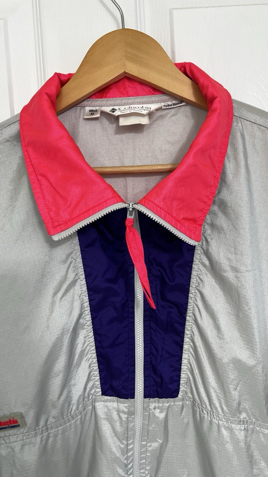 Vintage Retro Columbia Windbreaker Jacket Unisex M Silver Pink 80s 90s Y2K