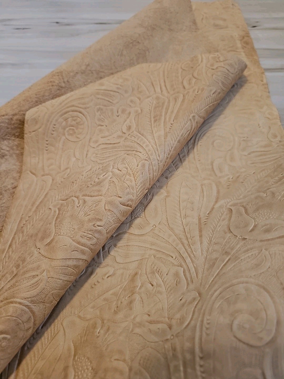 как выглядит 3-4oz MATTE SADDLE TAN FLORAL EMBOSSED SOFT LEATHER HIDE PANEL,SHEET,24x24,SQUAR фото