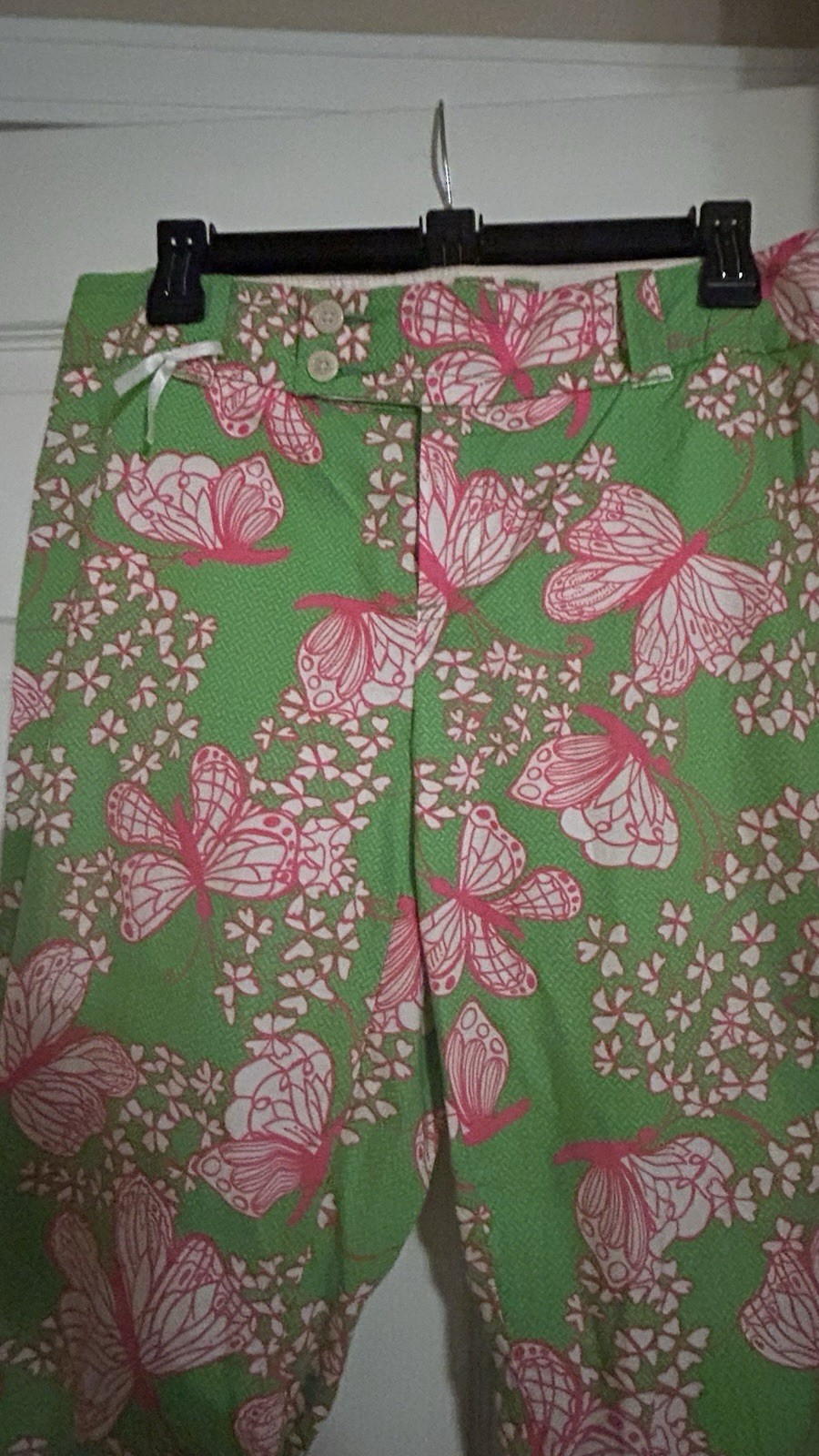 как выглядит Lilly Pulitzer Womens Capri Pants Size 6 Green With Pink White Butterflies фото