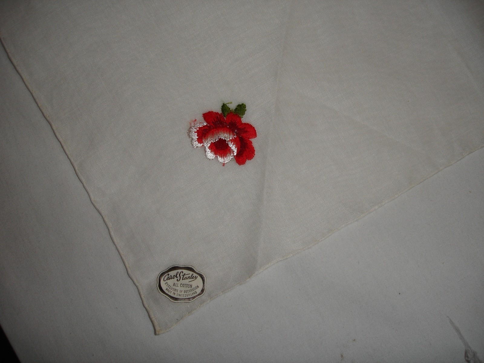 как выглядит VTG.NWT CAROL STANLEY FLORAL HANKIE,SHEER WHITE WITH RED ROSES,15 IN. фото