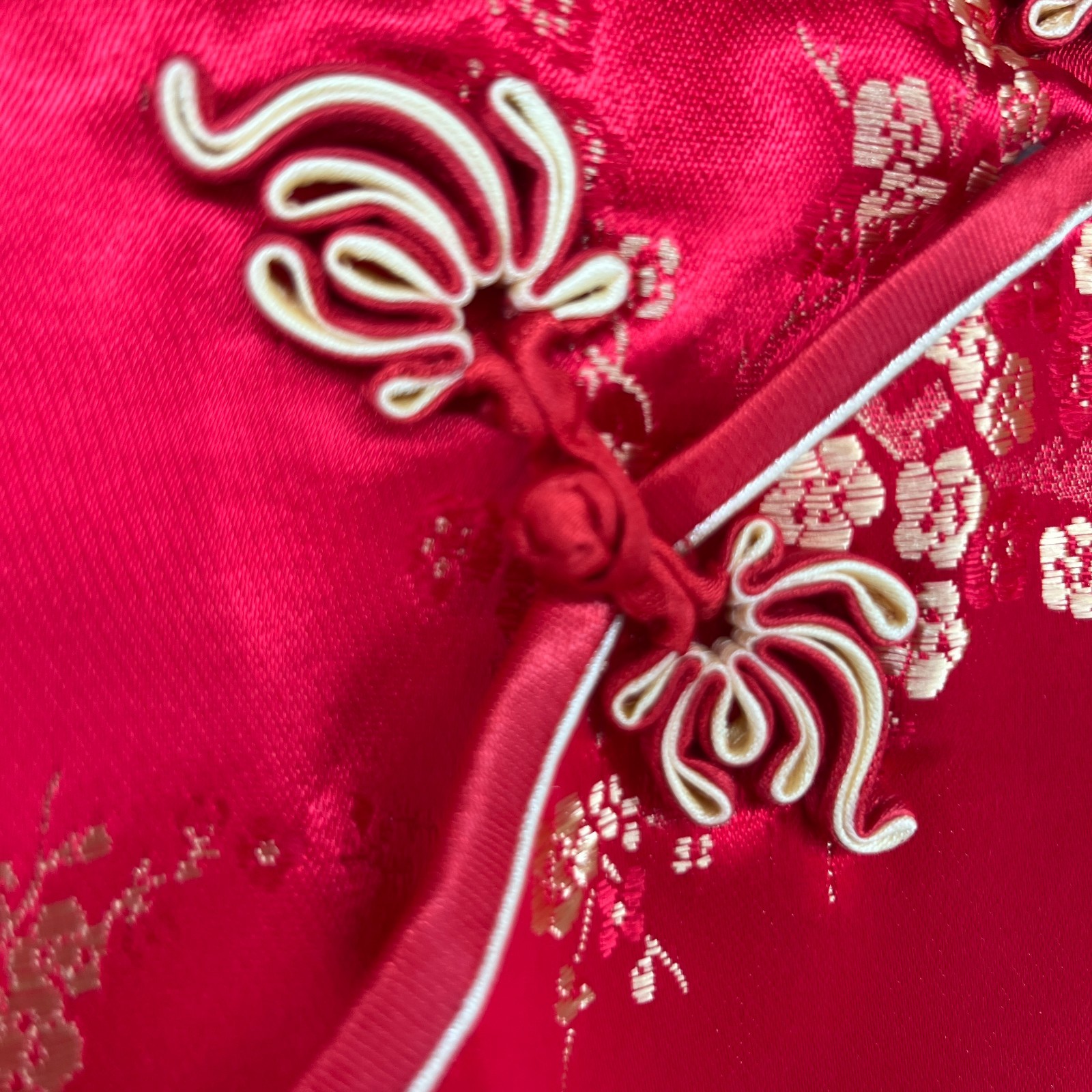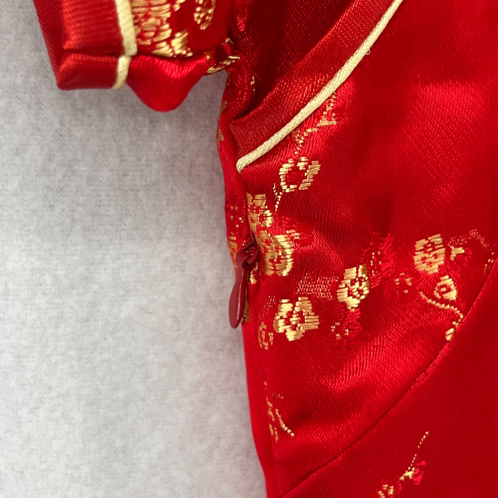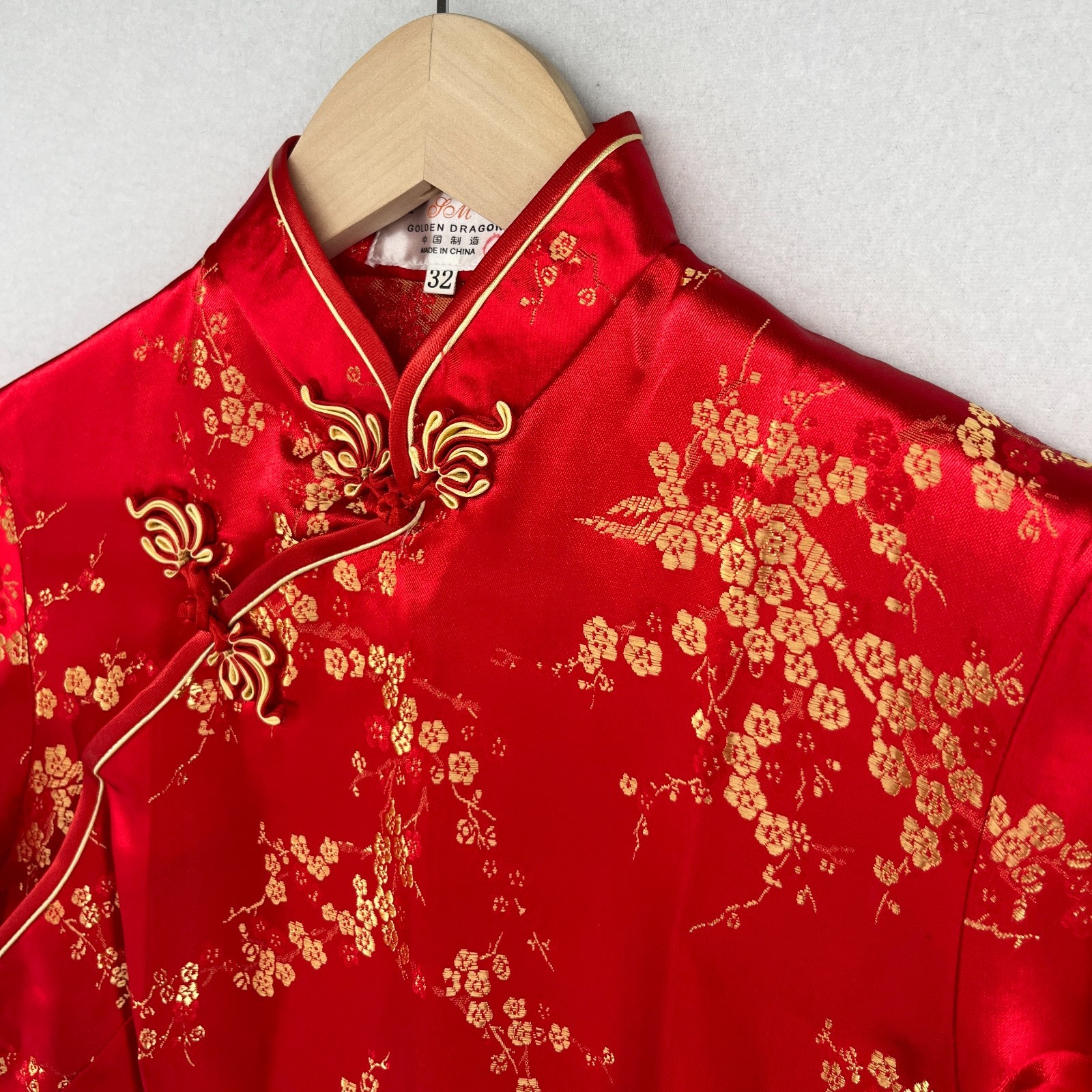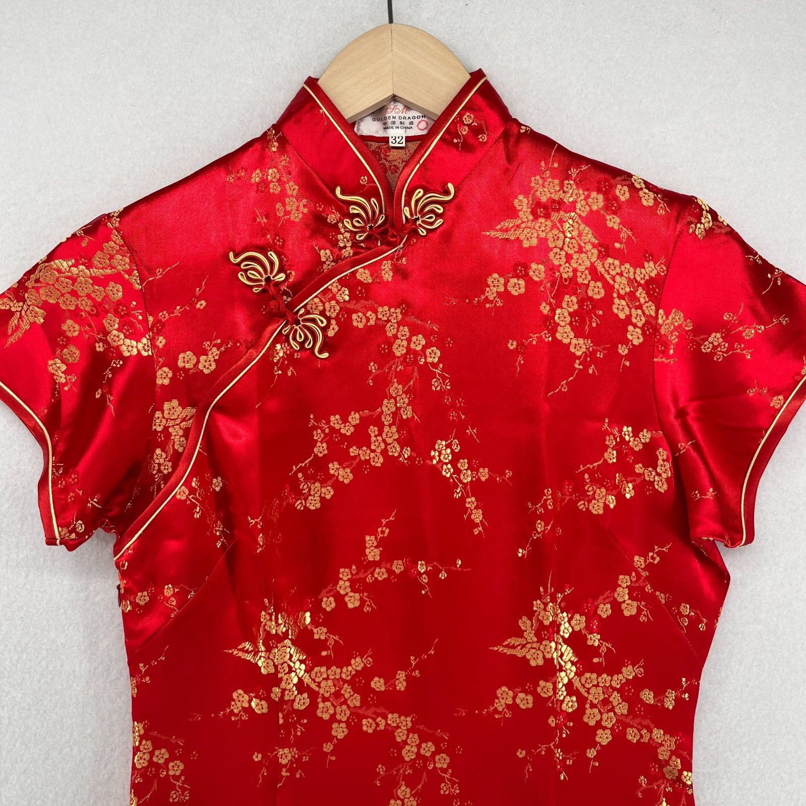 GOLDEN DRAGON Dress 32 XS Chinese Asian Floral Satin Cheongsam Qipao Red VTG