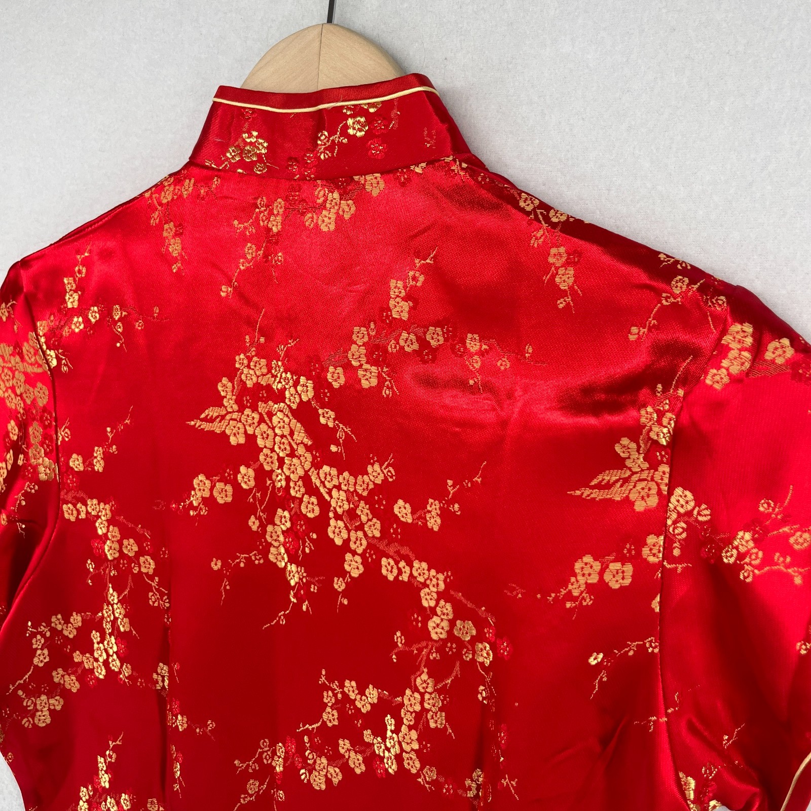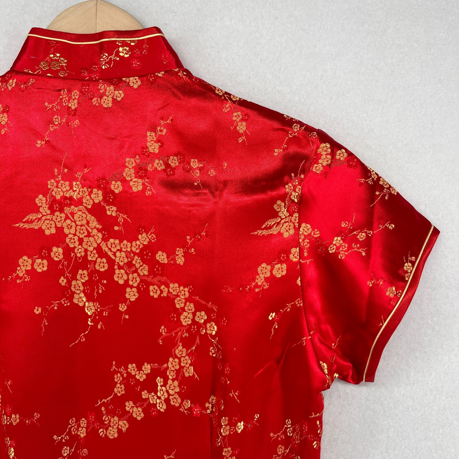 как выглядит GOLDEN DRAGON Dress 32 XS Chinese Asian Floral Satin Cheongsam Qipao Red VTG фото